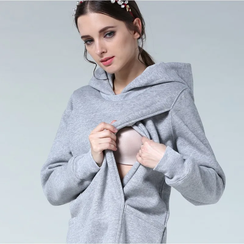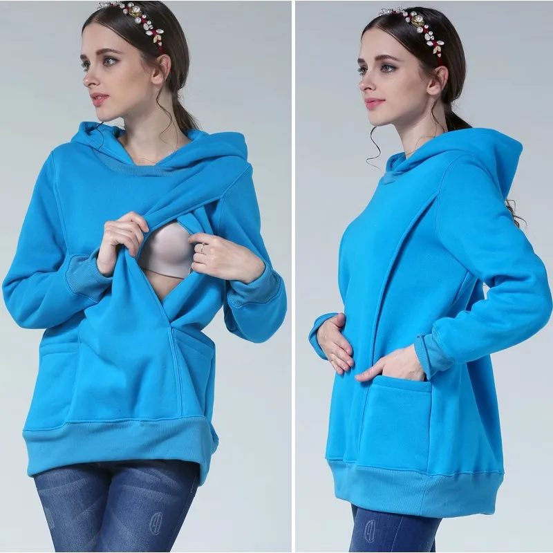 Comprar Ropa de maternidad de lana para mujer, Sudadera con capucha para amamantar, jersey para embarazadas, ropa de embarazo, suéter de talla grande, Invierno