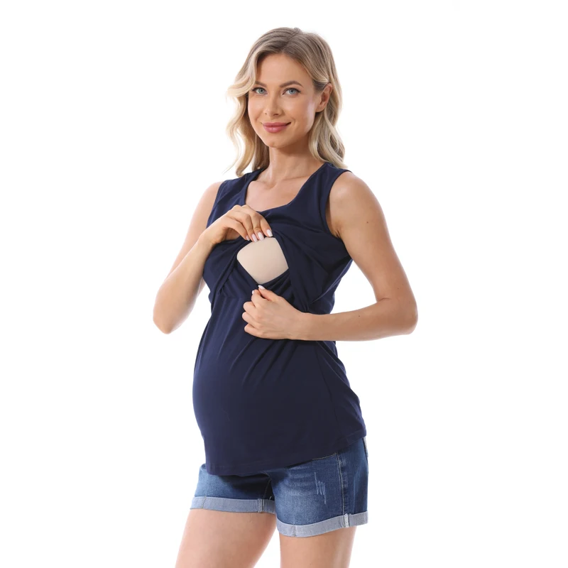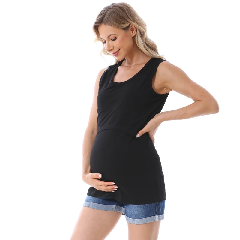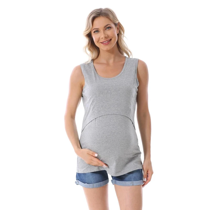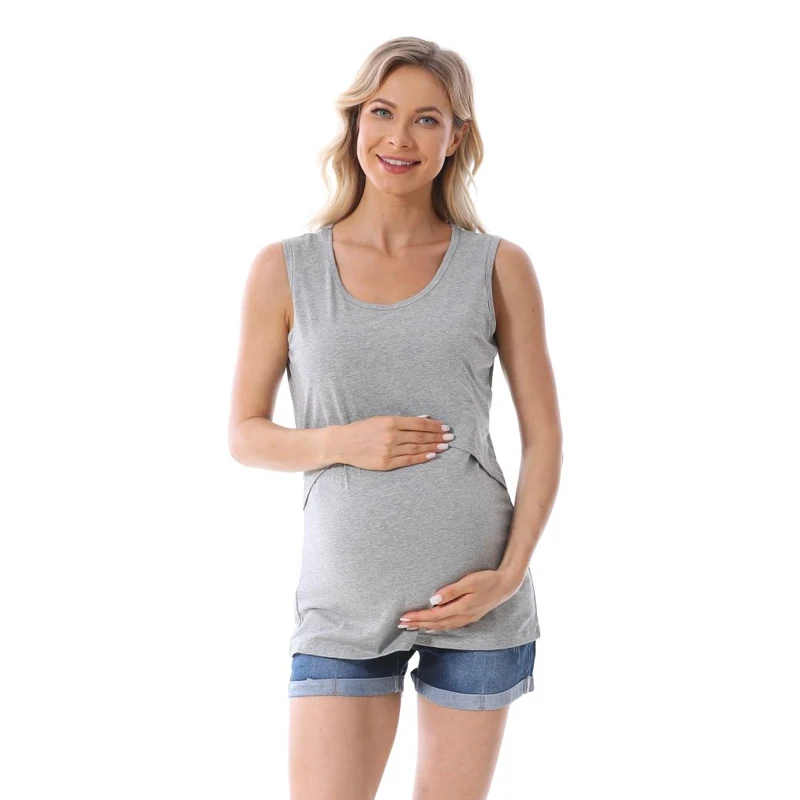 Comprar Ropa de maternidad para mujer, camisetas sin mangas, ropa de embarazo para amamantar, camisetas de verano de talla grande S-5XL