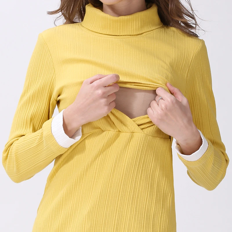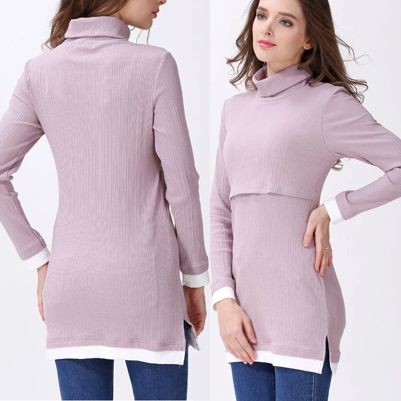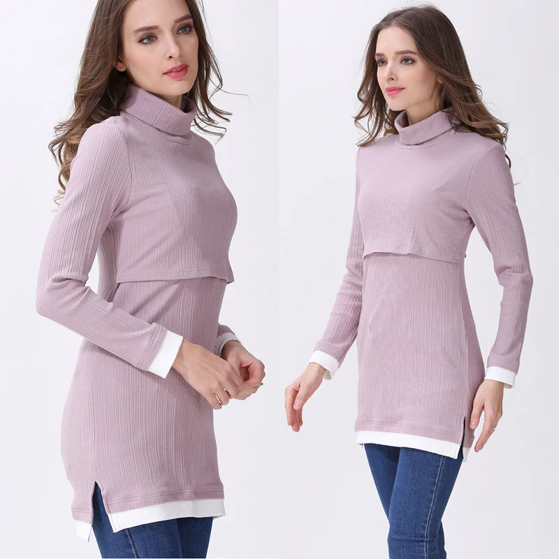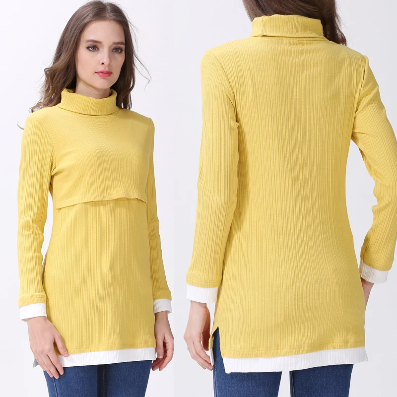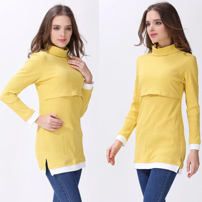 Comprar Ropa de maternidad, Tops de lactancia de manga larga, ropa de lactancia con cuello alto para mujeres embarazadas, camisetas de Otoño Invierno