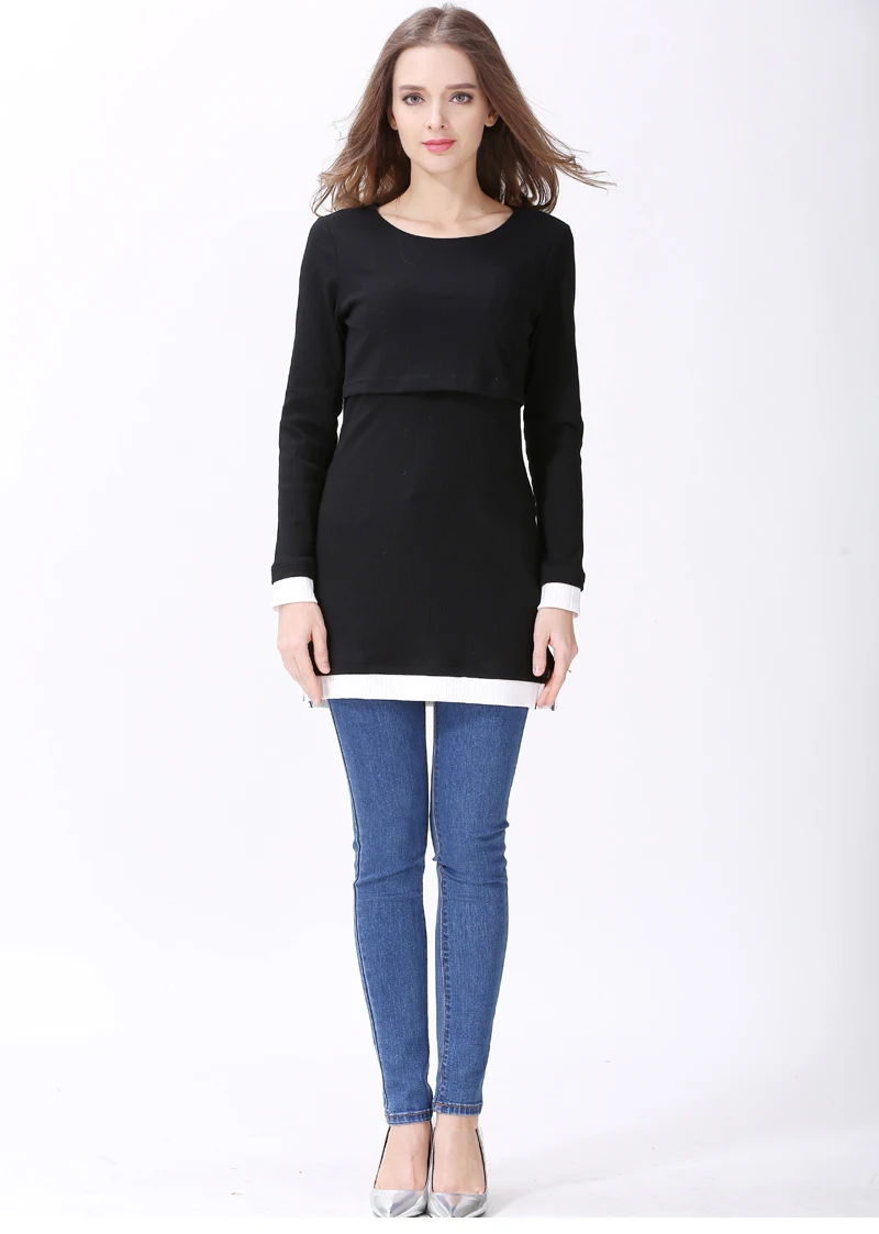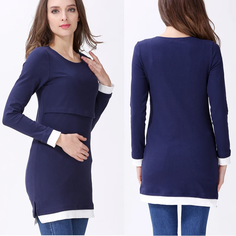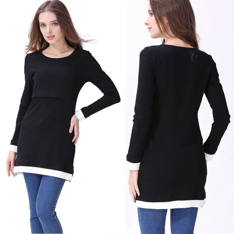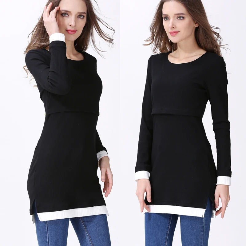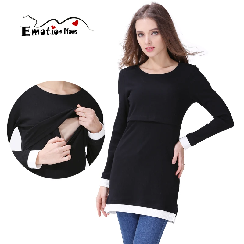 Comprar Ropa de maternidad, Tops de lactancia de manga larga, ropa de lactancia con cuello alto para mujeres embarazadas, camisetas de Otoño Invierno