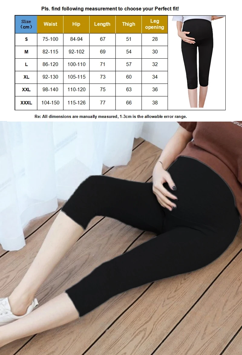 Comprar Ropa de maternidad de verano, pantalones Capris, pantalones Modal, pantalones para mujeres embarazadas, pantalones de cintura ajustable, mallas de maternidad