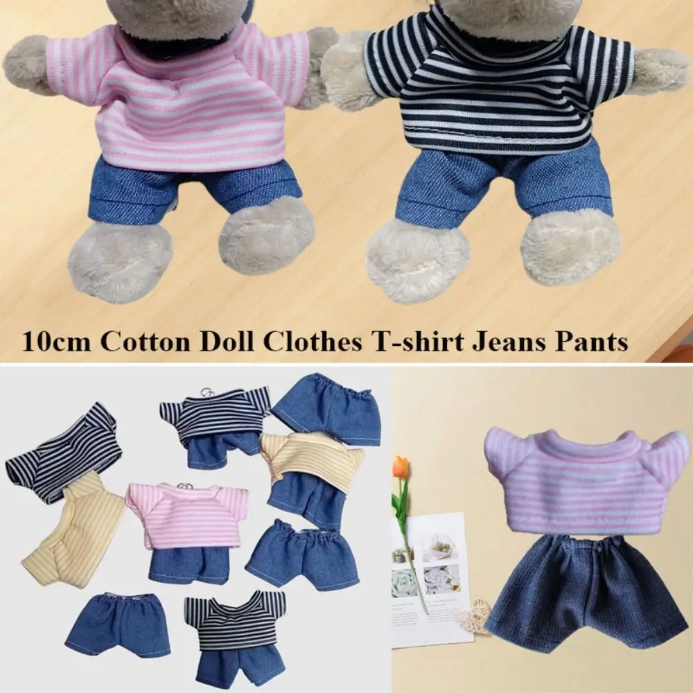Ropa de muñeca de algodón de 10cm, camiseta de estilo a la moda, pantalones vaqueros, Mini ropa, ropa informal, traje, accesorios para muñecas DIY