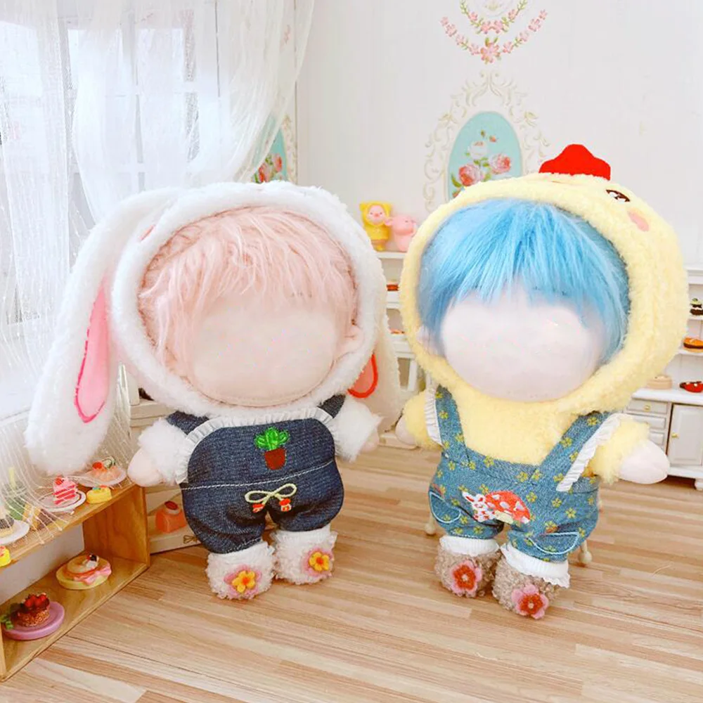 Comprar Ropa de muñeca de felpa de dibujos animados, Mini sudaderas con capucha de animales, pantalones con tirantes, monos cortos para muñecas de peluche de algodón, accesorios de juguete, 20cm