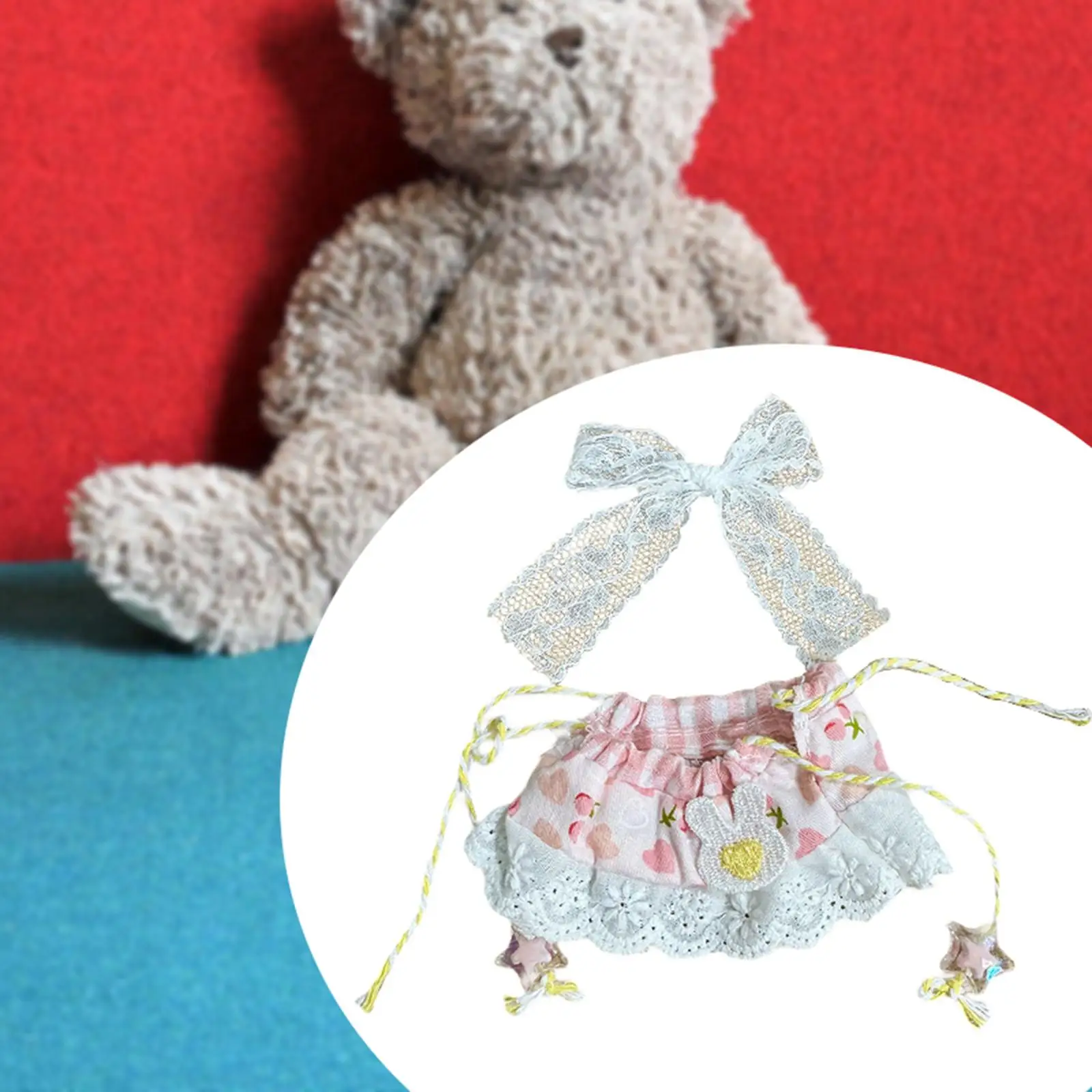 Comprar Ropa de muñeca para muñeca de peluche de 15cm-17cm, ropa de muñeca, vestido con patrón de cereza, accesorios para fotos de bricolaje elegantes, falda de muñeca de felpa cómoda