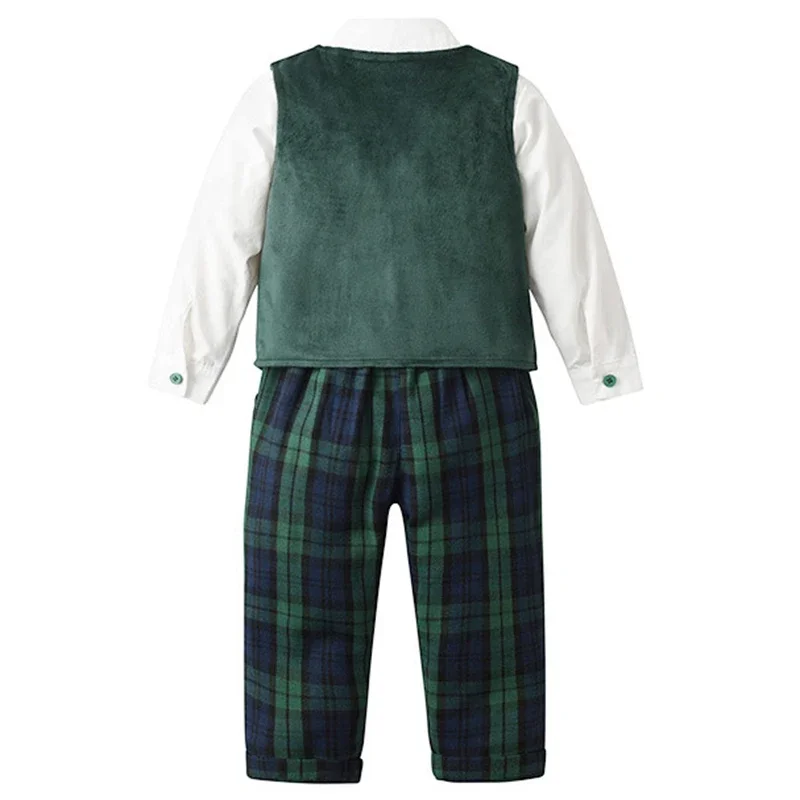 Comprar Ropa navideña para bebé, traje Formal para niño, camisa de manga larga, chaleco, pantalones, conjuntos de 3 uds., ropa para fiesta de cumpleaños de caballero