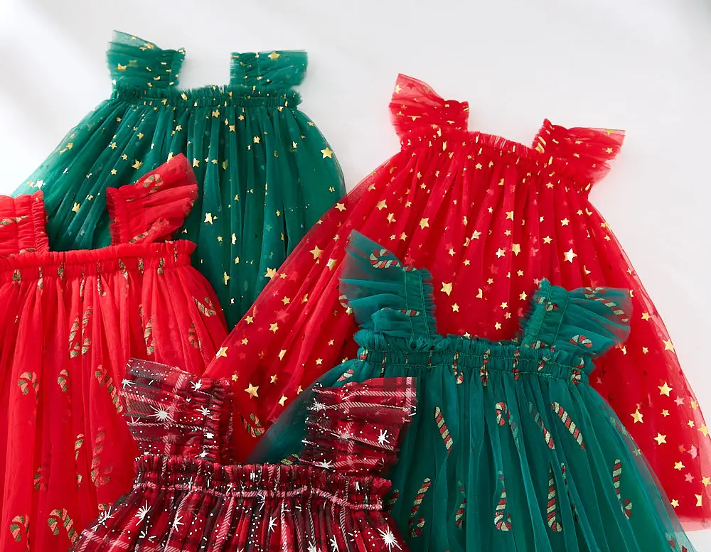 Comprar Ropa navideña para niñas de 1 a 6 años, vestido de tul con estampado de estrellas, vestidos de malla sin mangas