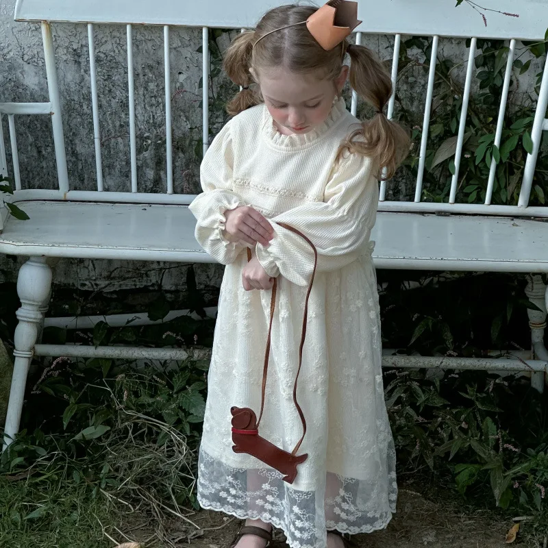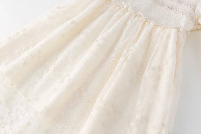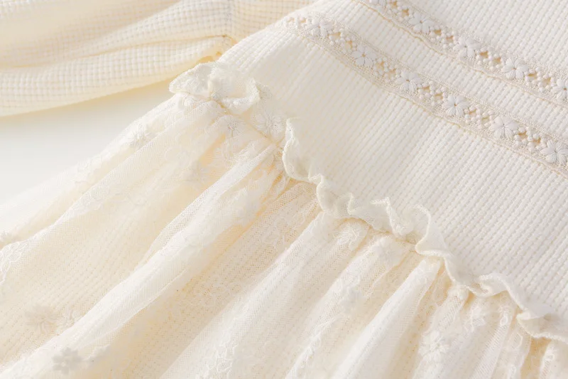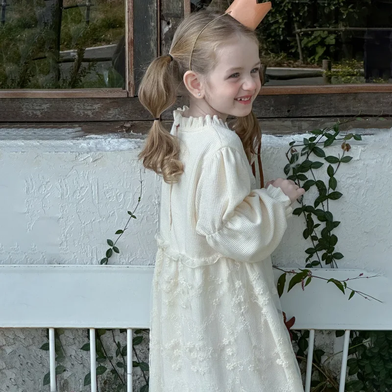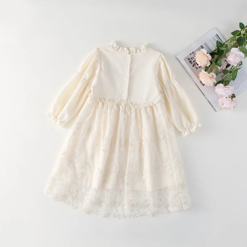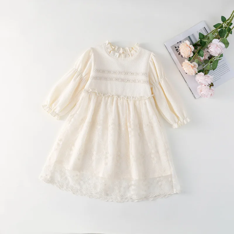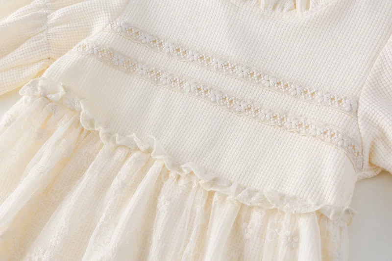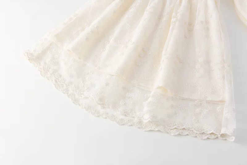 El vestido presenta un delicado diseño de encaje, añadiendo un toque de elegancia y feminidad al guardarropa de tu pequeña.