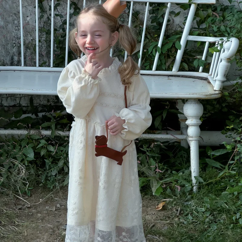 El vestido presenta un delicado diseño de encaje, añadiendo un toque de elegancia y feminidad al guardarropa de tu pequeña.