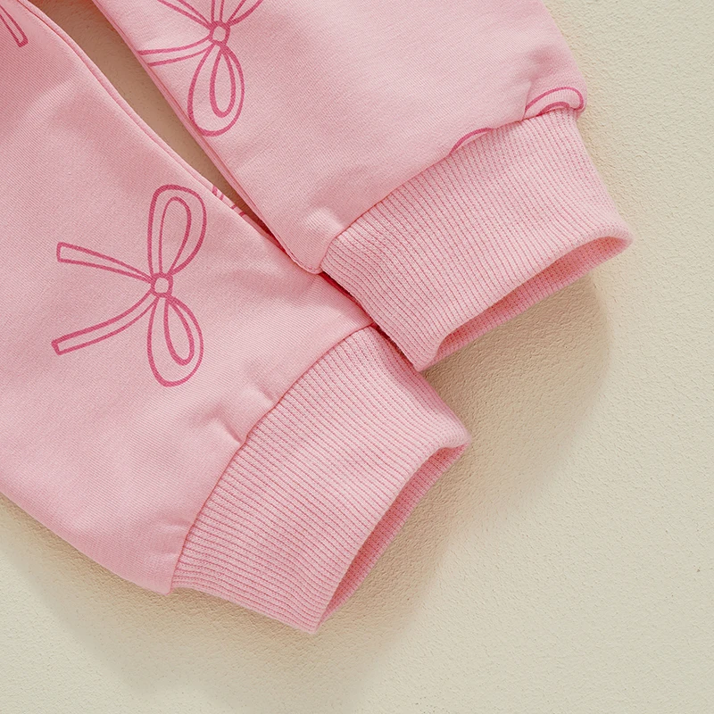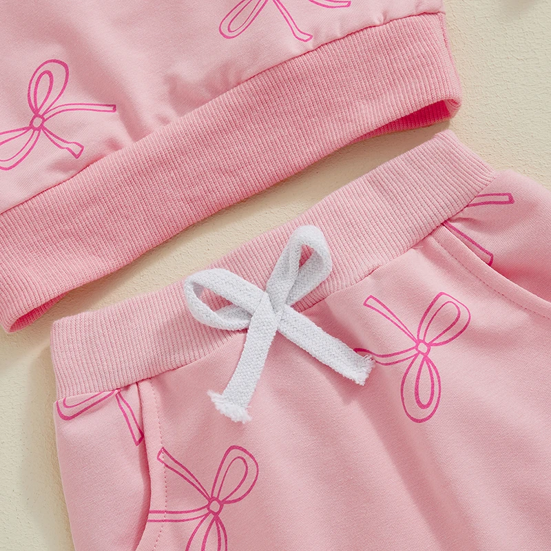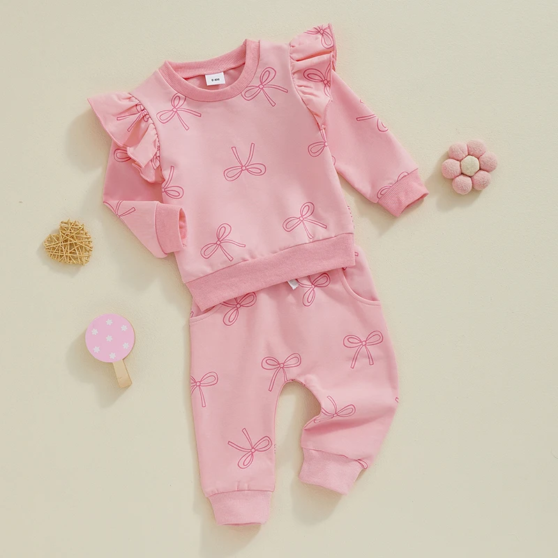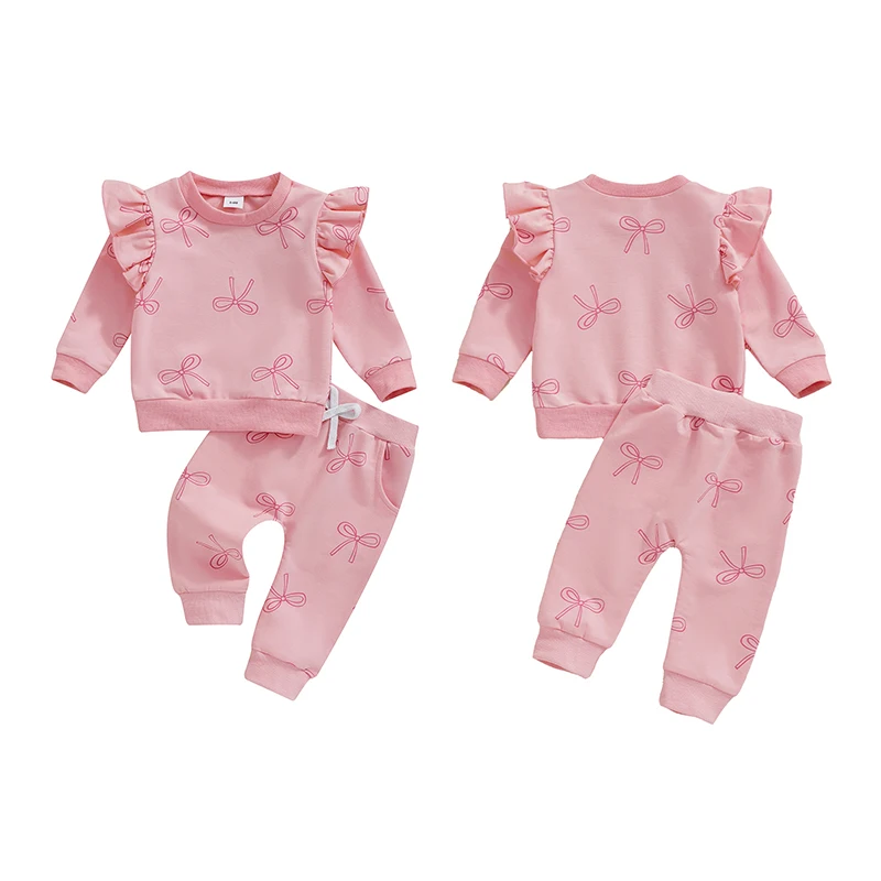 Comprar Ropa para niñas pequeñas de 0 a 3 meses, conjuntos informales de otoño, Tops con estampado de lazo y manga larga con cuello redondo, pantalones de cintura elástica con cordón, 2 uds.