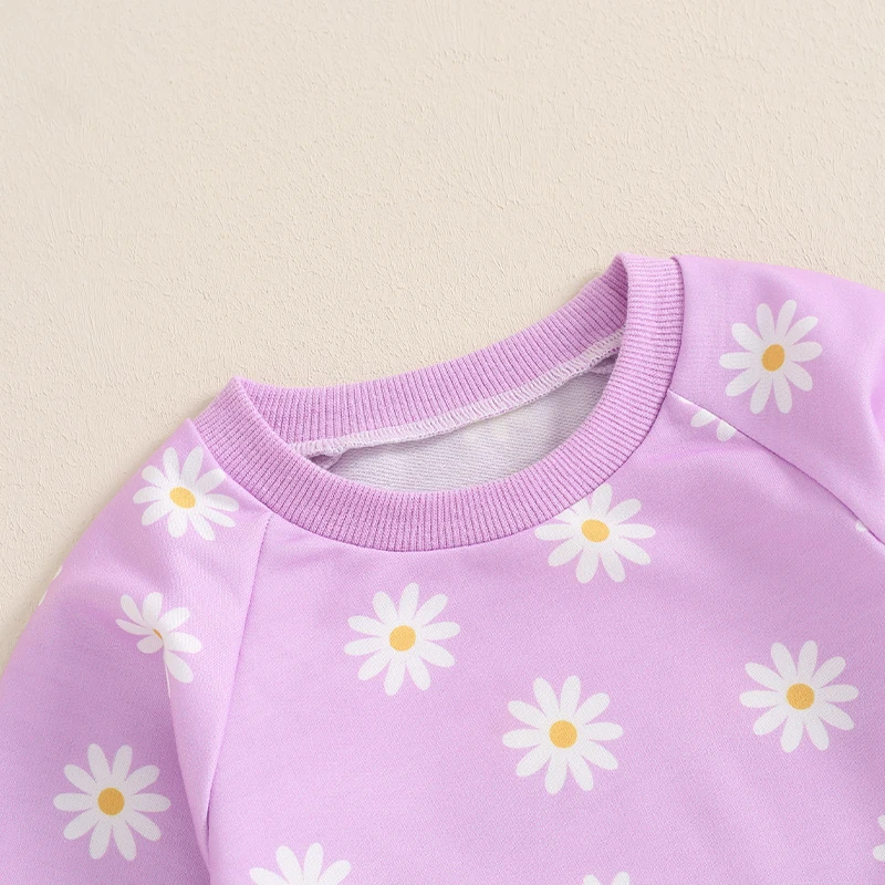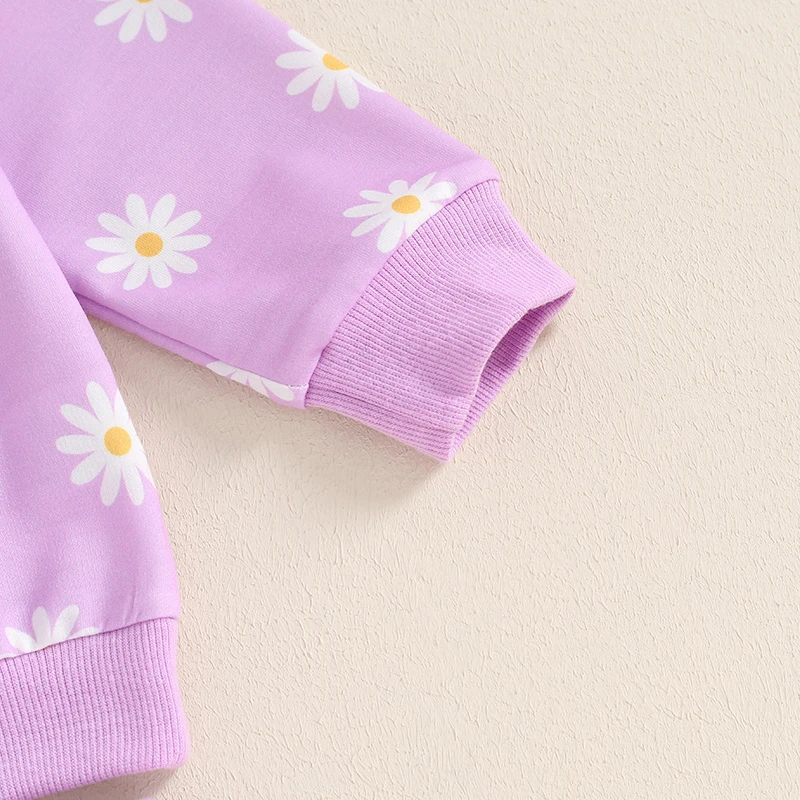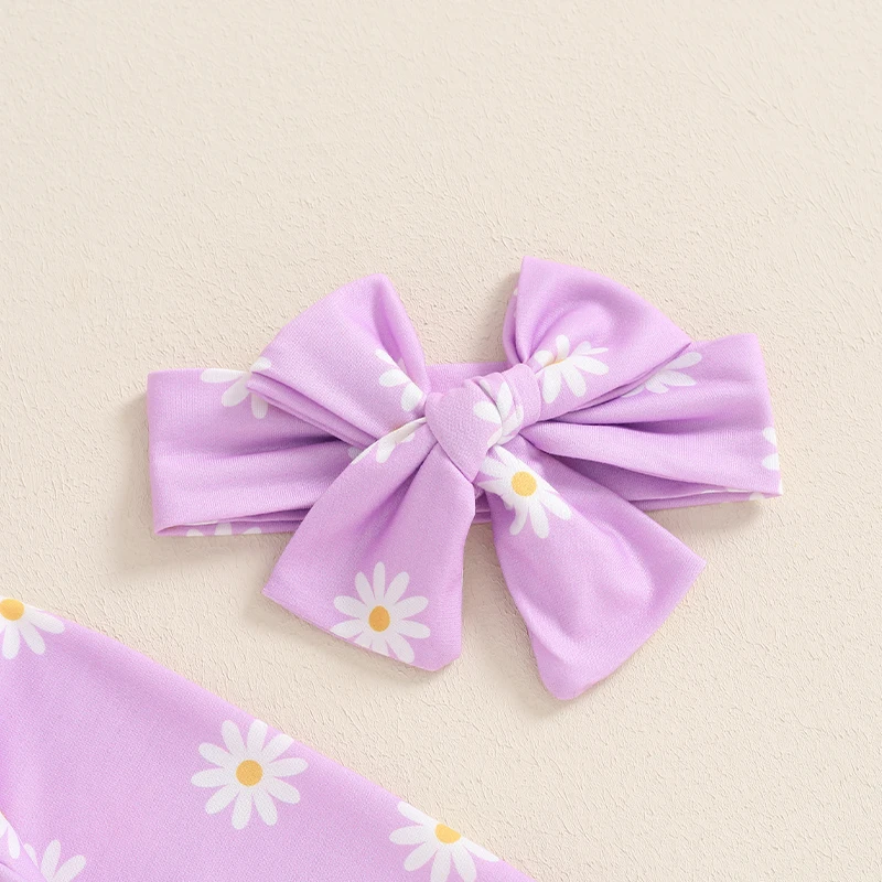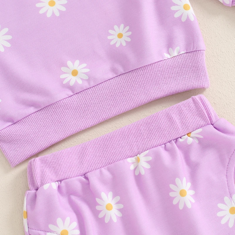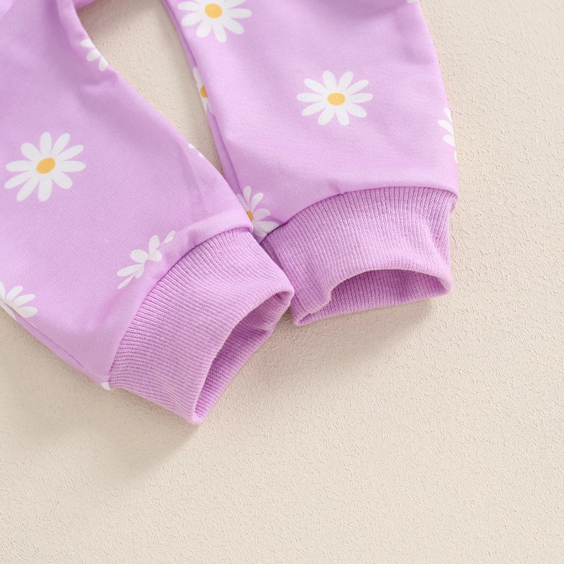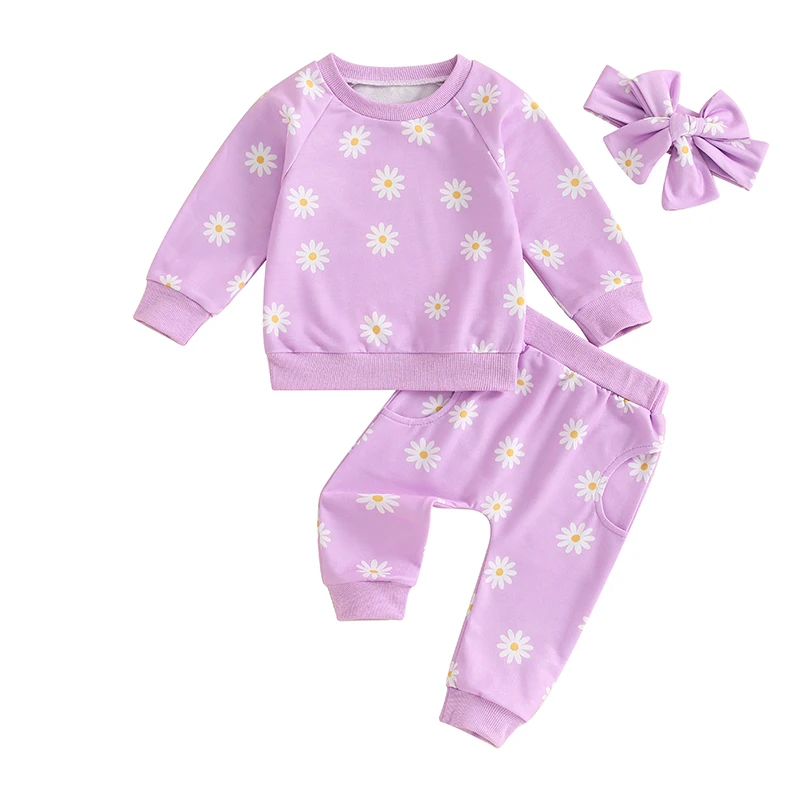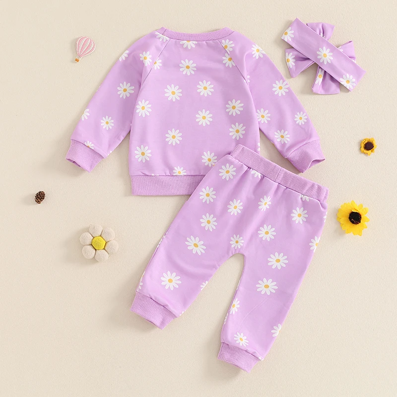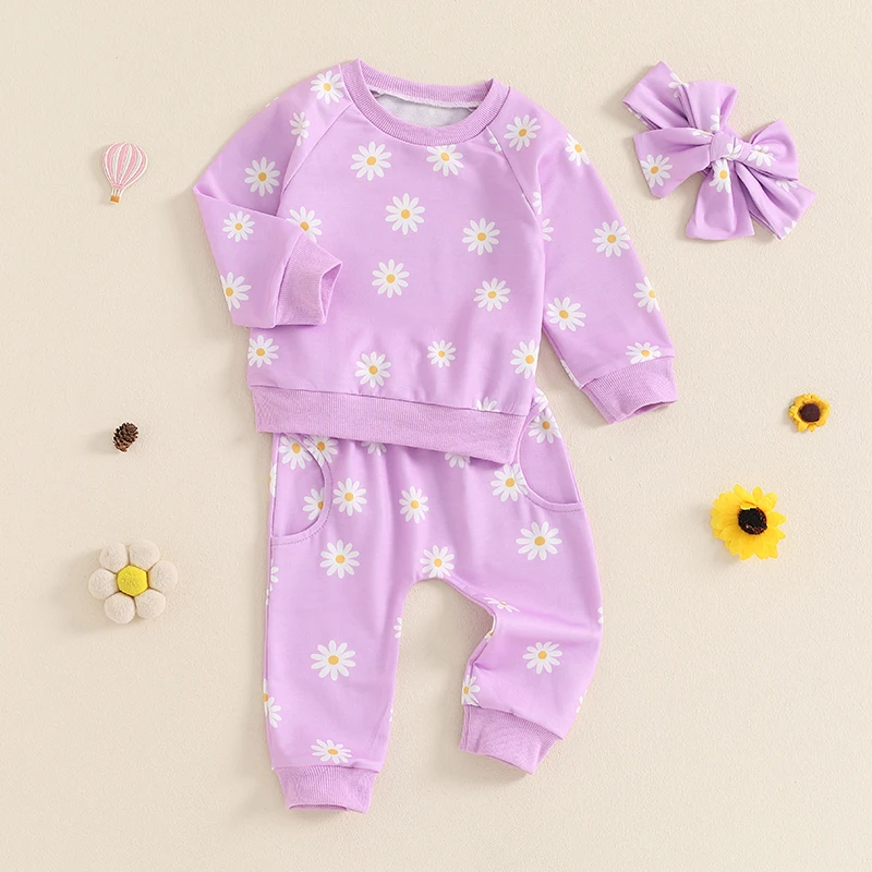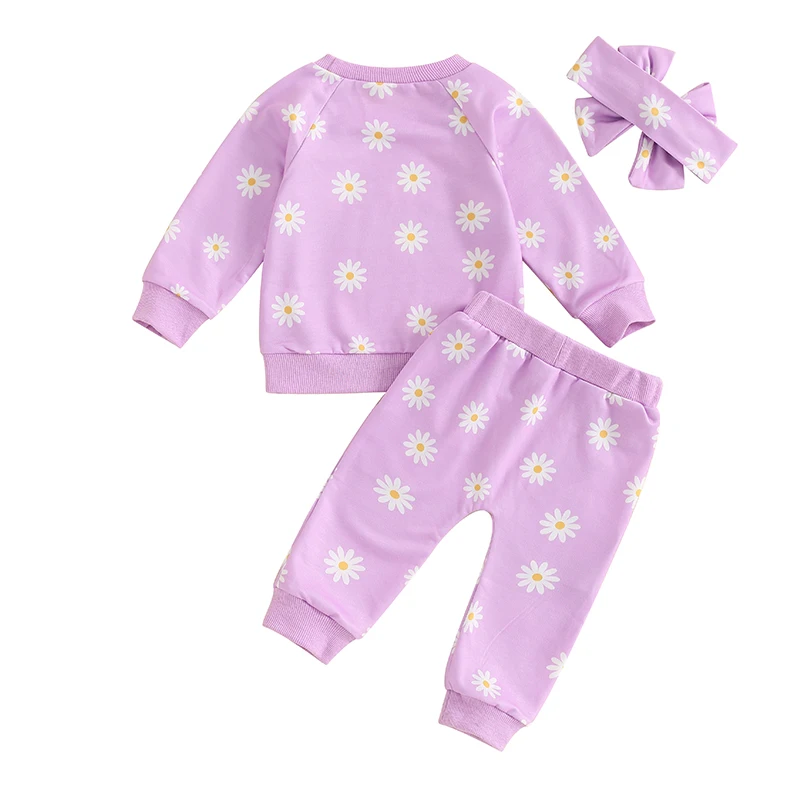 Comprar Ropa para niñas pequeñas de 0 a 3 años, Sudadera de cuello redondo de manga larga con estampado de flores, pantalones de chándal, diadema, traje de otoño