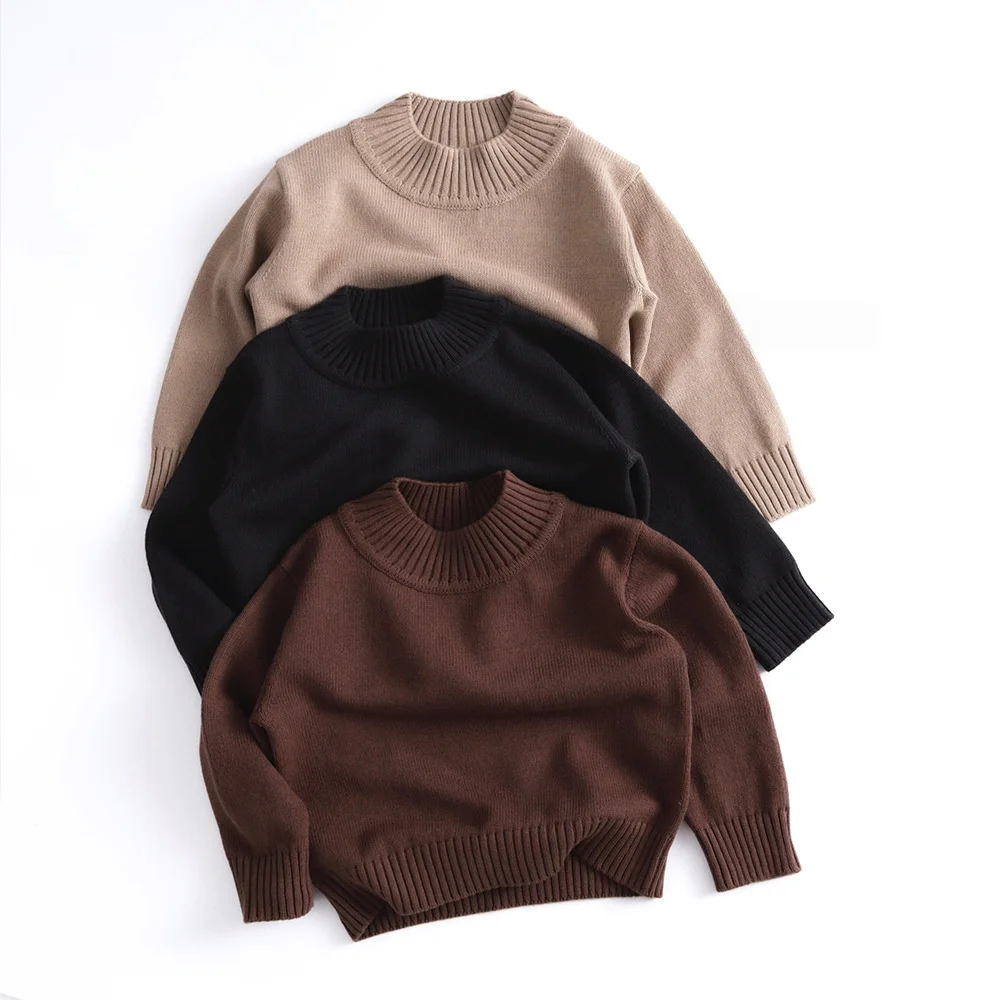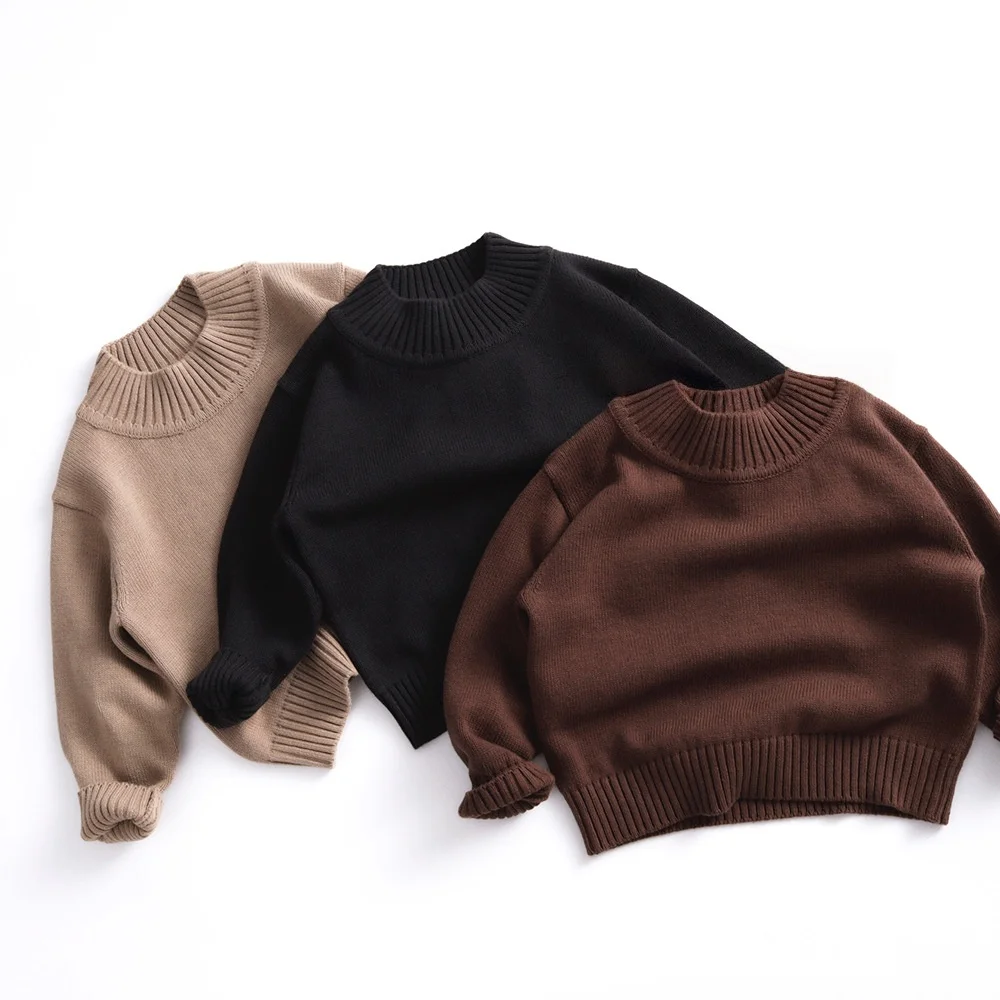 Comprar Ropa para niños de 1 a 6 años, suéteres nuevos de otoño para niños, ropa de punto con Base de cuello sólido, ropa de punto con cuello alto para niñas