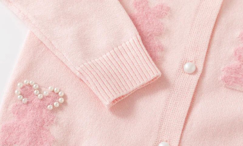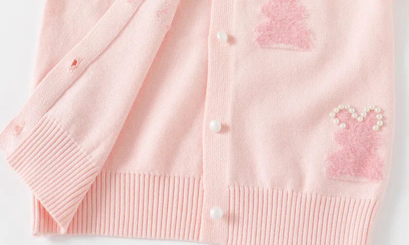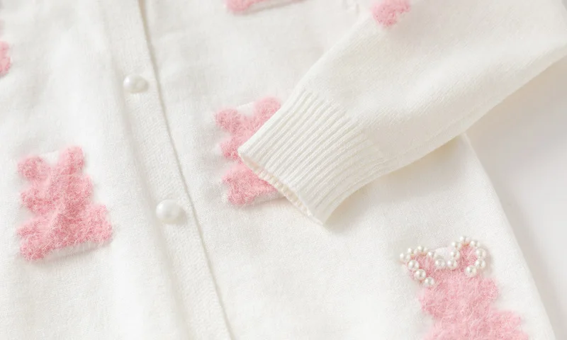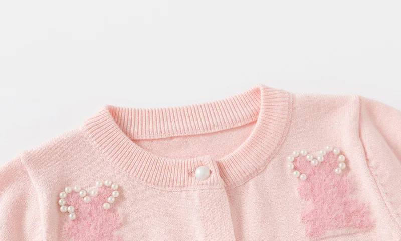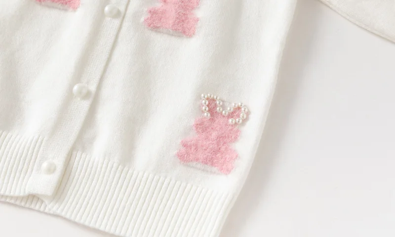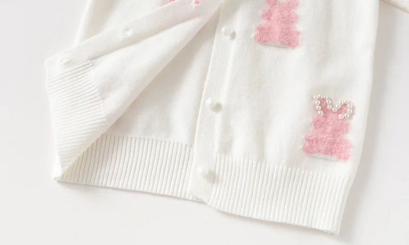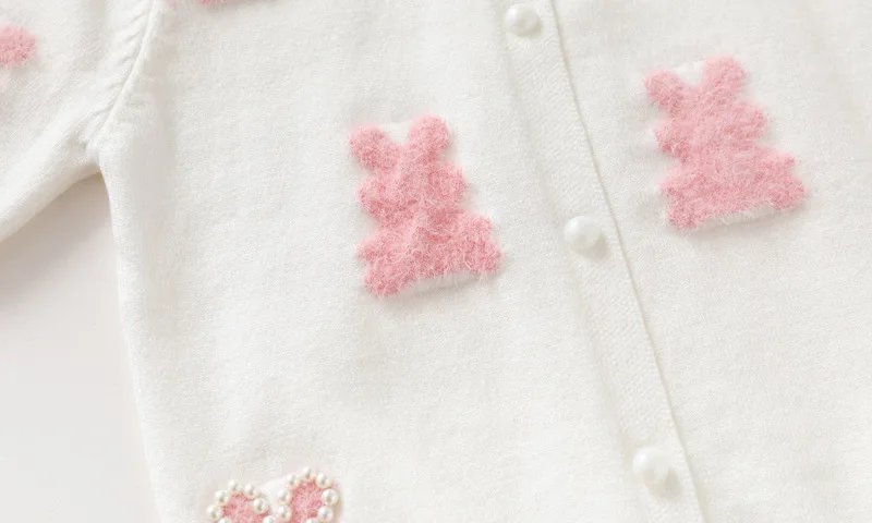 Ropa para niños, cárdigan de punto de conejo con cuentas de imitación de visón para niñas, chaqueta, suéter en el pecho para bebés, TOP para niñas