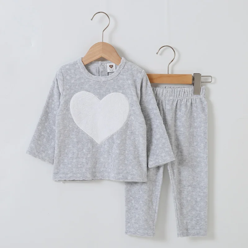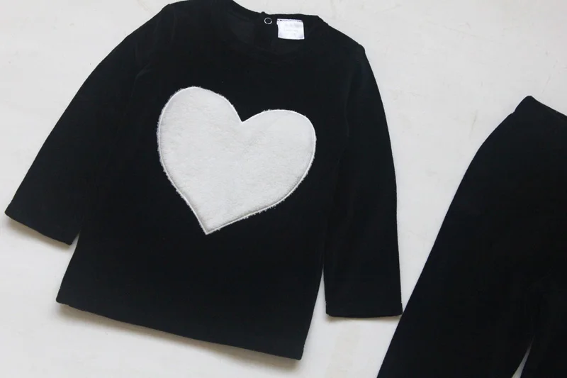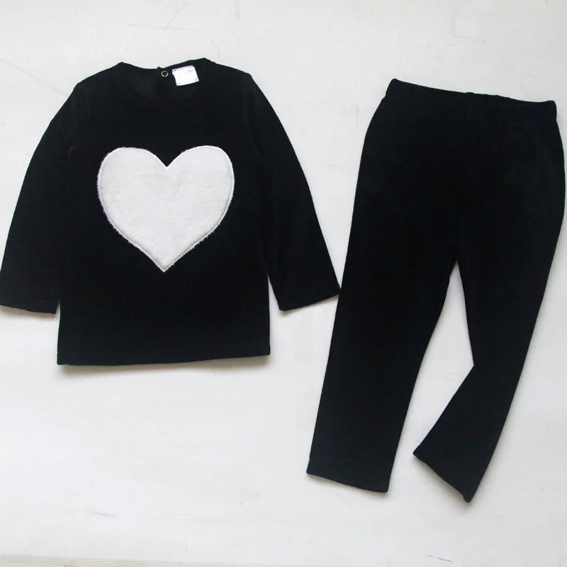 Ropa para niños, conjunto de 2 piezas, ropa de terciopelo para niños, ropa para bebés, ropa para niñas, cuello redondo, pantalones largos, corazón, estrella, conjunto para niños 2-5T