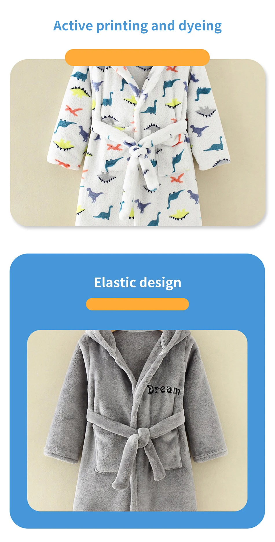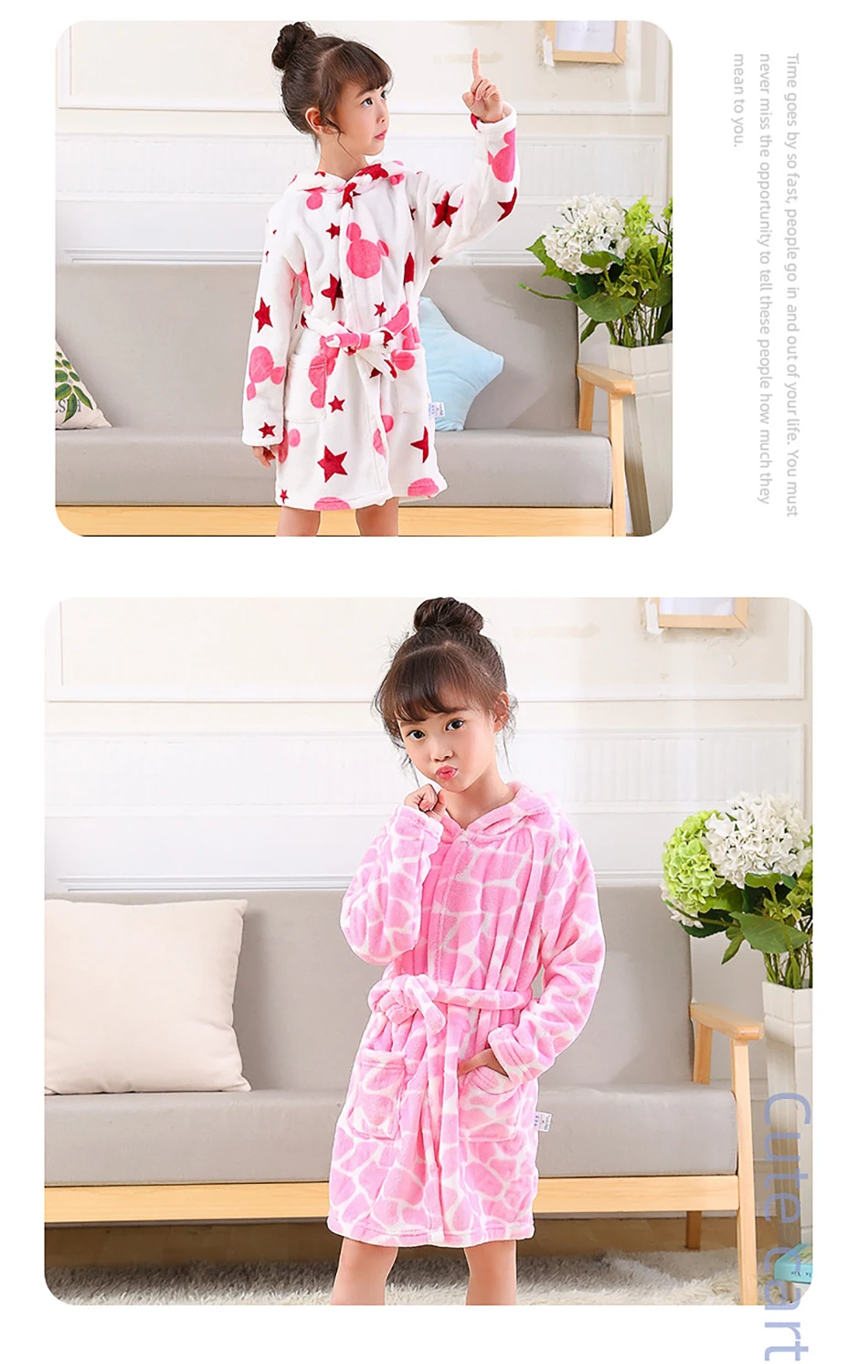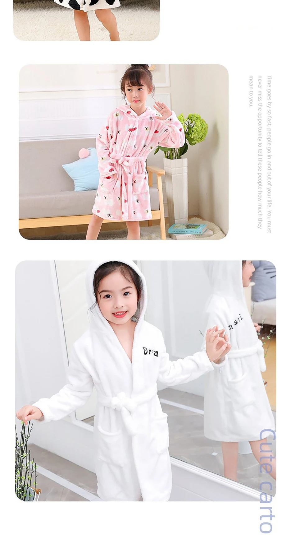 Name: Children Clothing Home Wear Boys and Girls Bathrobes Pajamas Cartoon Flannel Hooded Children Comfortable Nightgowns Robes