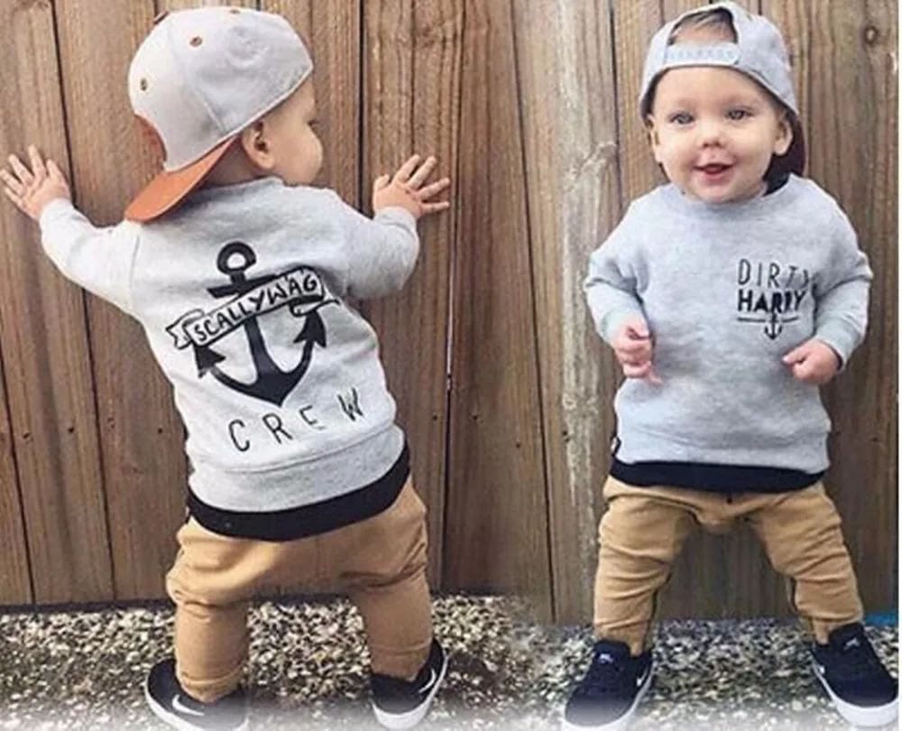 Ropa para niños, trajes, tendencia de primavera y otoño, camiseta de manga larga con letras para bebé, pantalones, 2 uds., trajes de ropa de 3 meses a 4 años, 2021