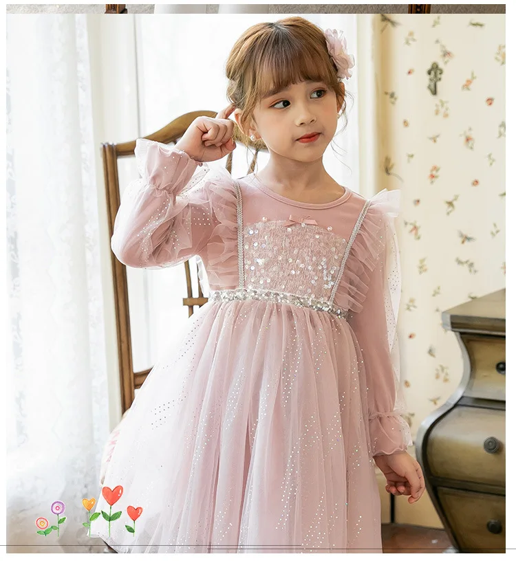 Comprar Ropa para niños, vestido de niña de malla de lentejuelas, vestido de princesa, falda de niña mediana y grande 2022