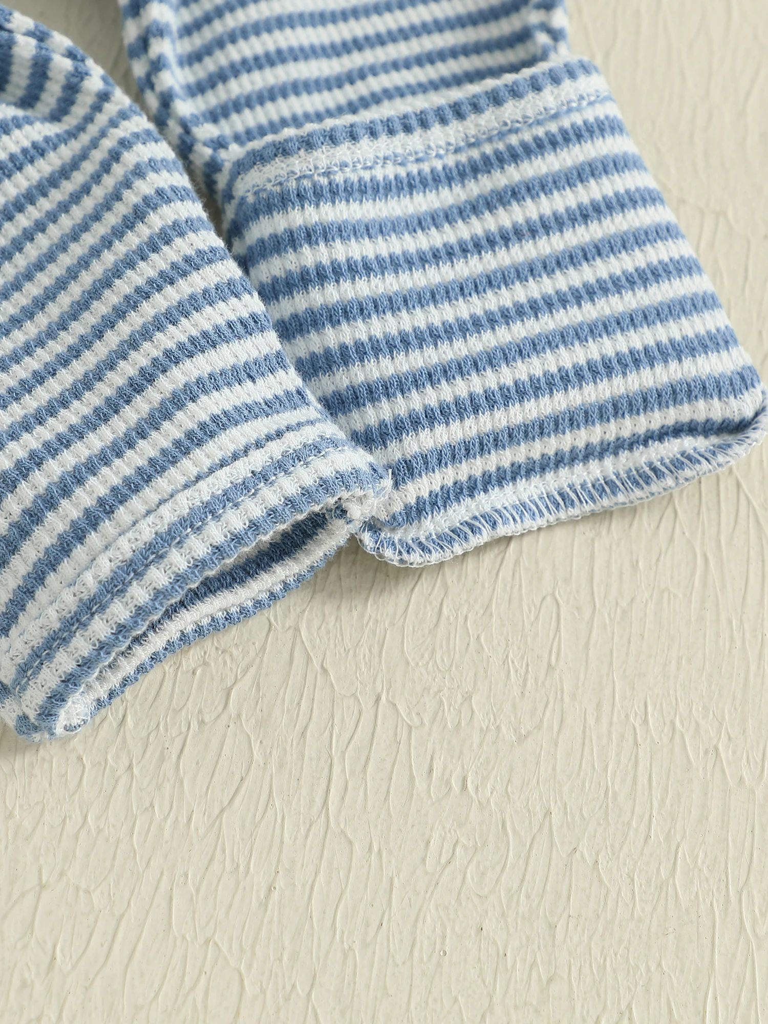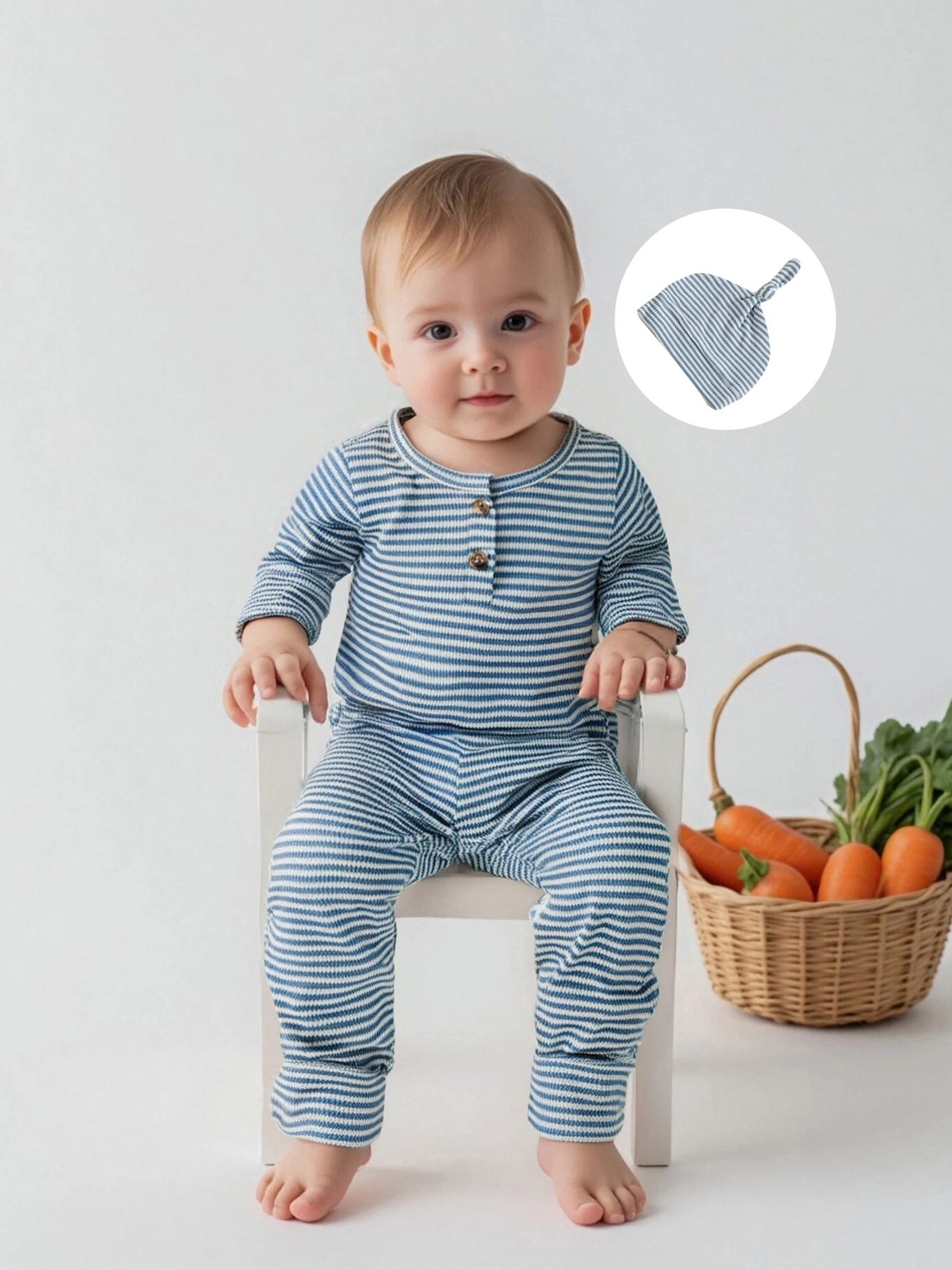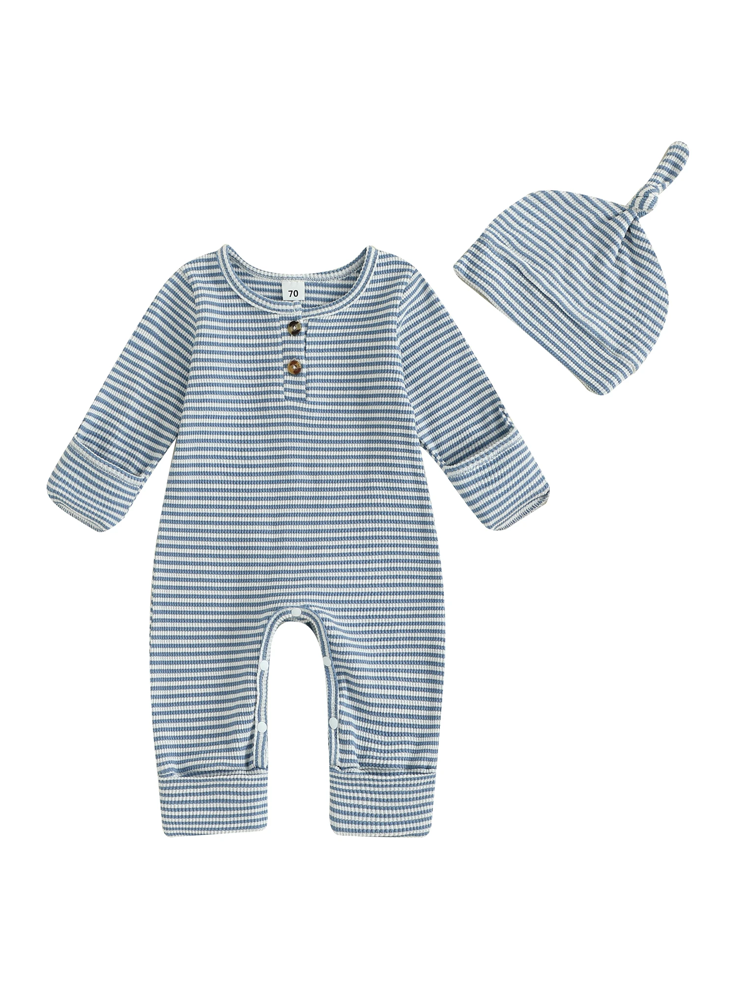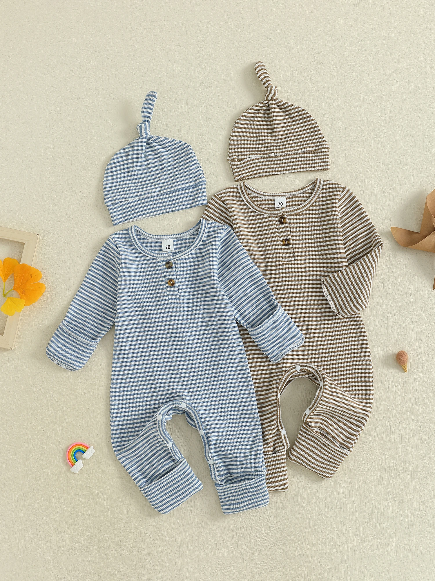 Especificación Nombre del artículo: ropa de bebé Material: 95% algodón y 5% elastano Patrón: Raya Cuello: cuello redondo Manga: manga larga
