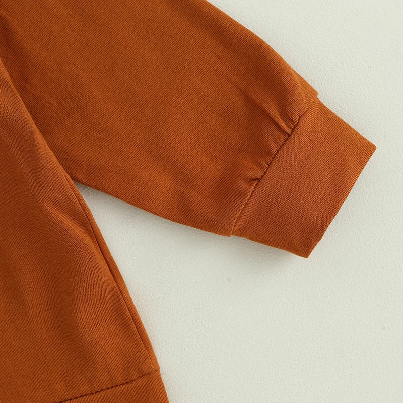 Conjunto de pantalones para bebés, sudadera con estampado de calabaza y letras de cuello redondo de manga larga con pantalones de chándal a rayas, ropa de HalloweenEl conjunto de pantalones para bebés es un atuendo imprescindible para los bebés en otoño, ¡le encantará! ¡Traje fácil!Tabla de tallasTamaño (cm)70 Tops Longitud: 32 Busto: 50 Longitud del pantalón: 38 Edad sugerida: 0-6 meses80 Tops Longitud: 34 Busto: 52 Longitud del pantalón: 41 Edad sugerida: 6-12 meses90 Tops Longitud: 36 Busto: 54 Longitud del pantalón: 44 Edad sugerida: 12-18 meses100 Longitud de la parte superior: 38 Busto: 56 Longitud del pantalón: 47 Edad sugerida: 18-24 meses110 Longitud de la parte superior: 41 Busto: 58 Longitud del pantalón: 51 Edad sugerida: 2-3 añosTamaño (pulgadas)70 Tops Longitud: 12,60 Busto: 19,69 Longitud del pantalón: 14,96 Edad sugerida: 0-6 meses80 Tops Longitud: 13,39 Busto: 20,47 Longitud del pantalón: 16,14 Edad sugerida: 6-12 meses90 Tops Longitud: 14,17 Busto: 21,26 Longitud del pantalón: 17,32 Edad sugerida: 12-18 meses100 Longitud de la parte superior: 14,96 Busto: 22,05 Longitud del pantalón: 18,50 Edad sugerida: 18-24 meses110 Longitud de la parte superior: 16,14 Busto: 22,83 Longitud del pantalón: 20,08 Edad sugerida: 2-3 añosEspecificaciónNombre del artículo: conjunto de pantalones para bebésColor: marrónMaterial: spandexTamaño: 70, 80, 90, 100, 110Patrón: estampadoManga: manga largaCollar: cuello redondoContenido del paquete1 sudadera x sudadera1 par de pantalones de chándalConsejos amigables1. Por favor permita una diferencia de 2 a 3% según la medición manual2. Tenga en cuenta que una ligera diferencia de color debe ser aceptable debido a la luz y la pantalla. Gracias.PromesaSi el producto tiene algún problema de calidad, no dude en contactarnos, le ayudaremos a resolver el problema lo más rápido posible.