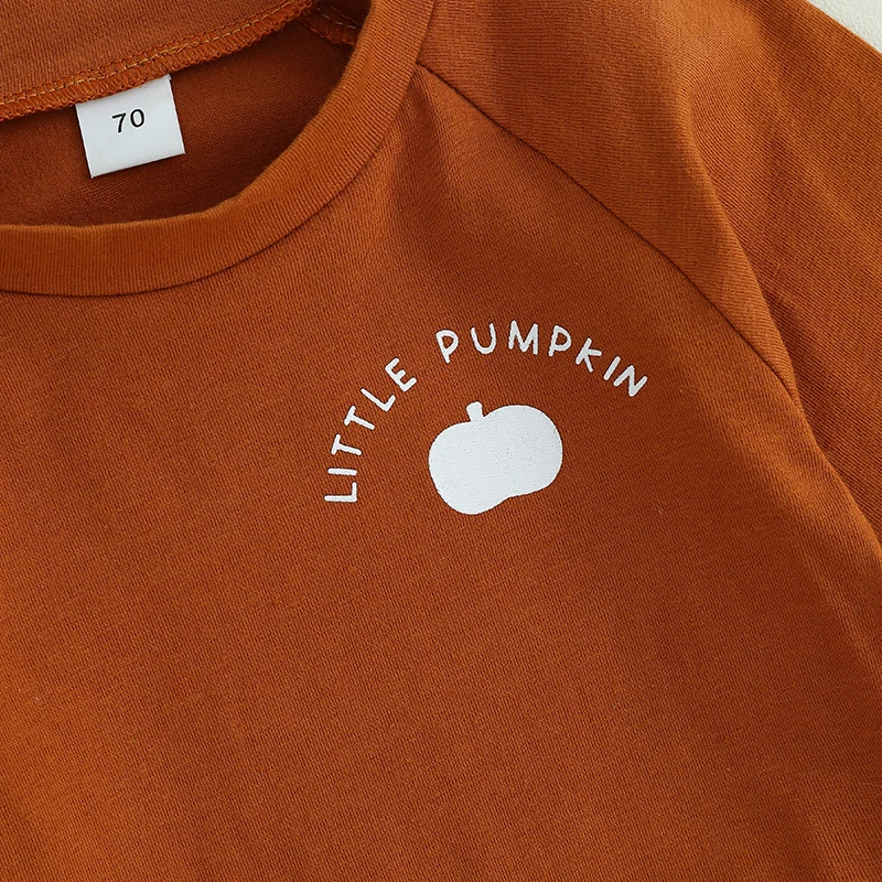 Comprar Ropa de otoño para bebés de 0 a 3 años, traje de Halloween, sudadera de manga larga con cuello redondo, letras, estampado de calabaza, pantalones de chándal a rayas