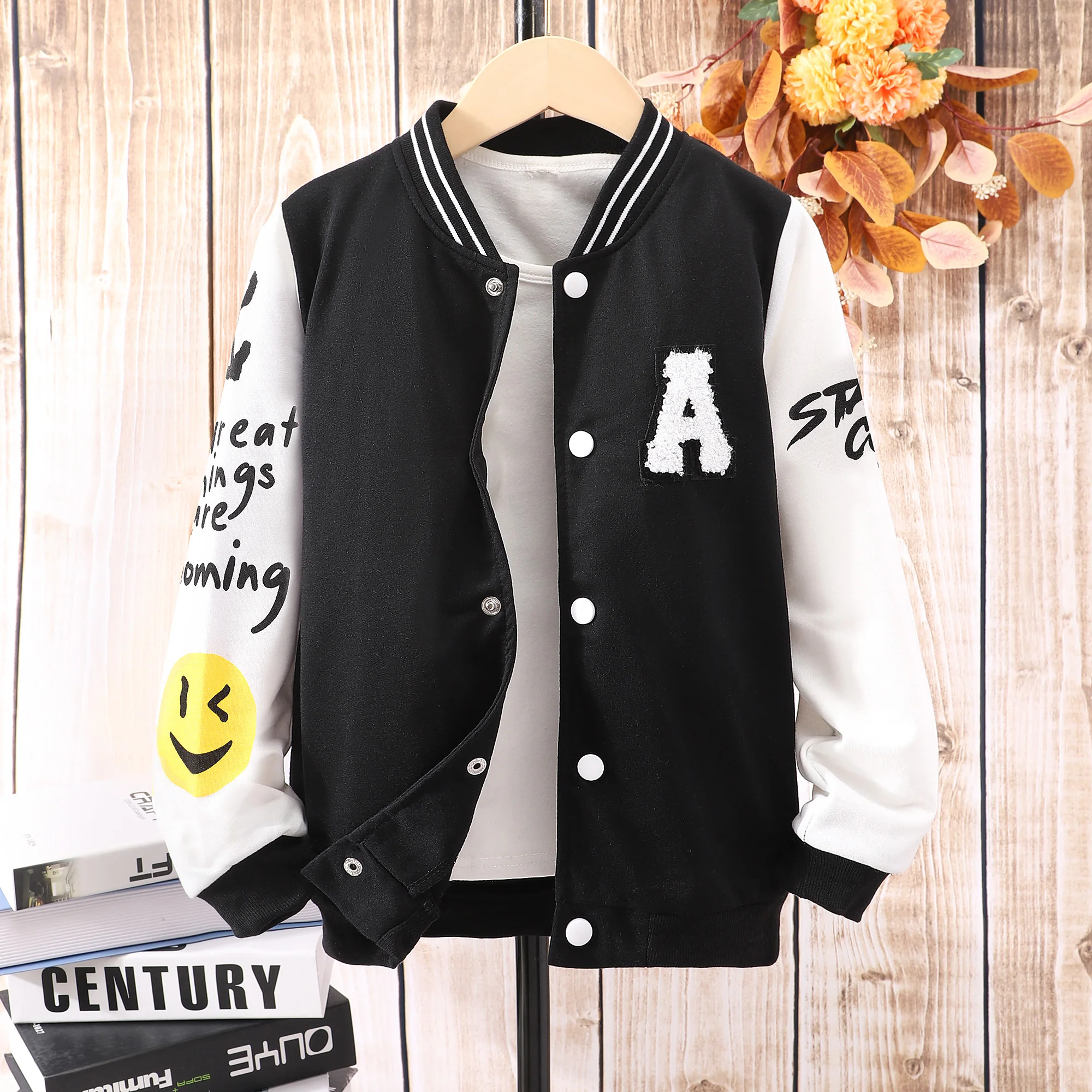 Ropa de otoño e invierno para niños, traje de béisbol con estampado de letras de Color contrastante, abrigo informal deportivo de moda 8 9 10 11 12 13 14 años