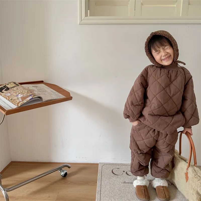 Comprar Ropa de otoño e invierno para niños, versión coreana, chaqueta acolchada de algodón, pantalones de algodón, traje para niñas, 2022