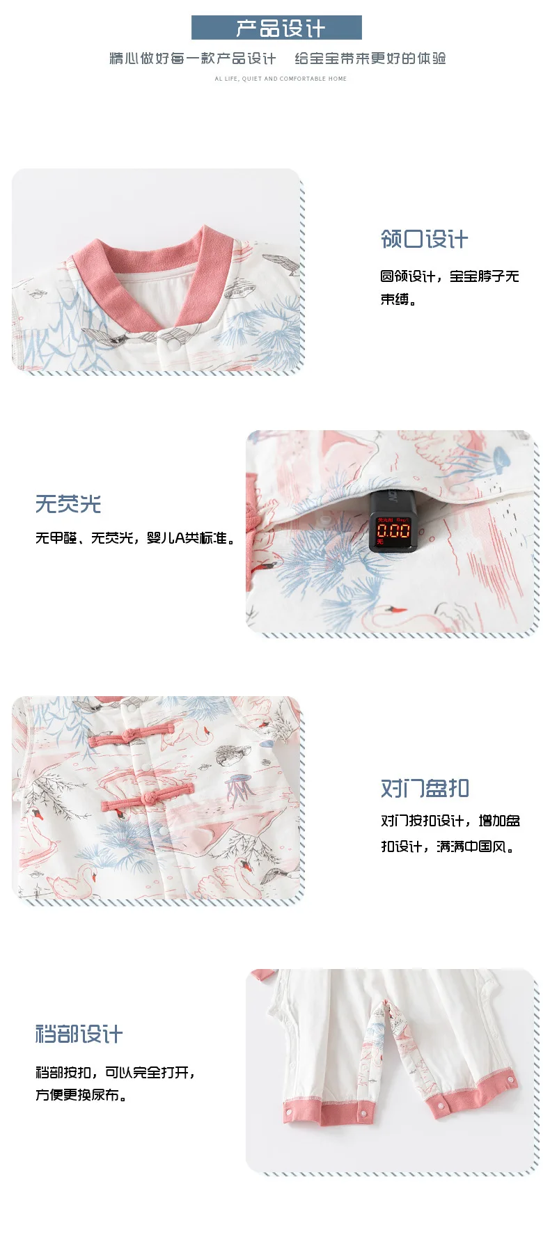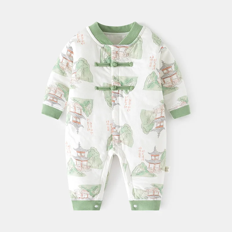 Ropa de otoño e invierno para recién nacidos, monos suaves y gruesos de algodón con dibujos animados de estilo chino, BC054