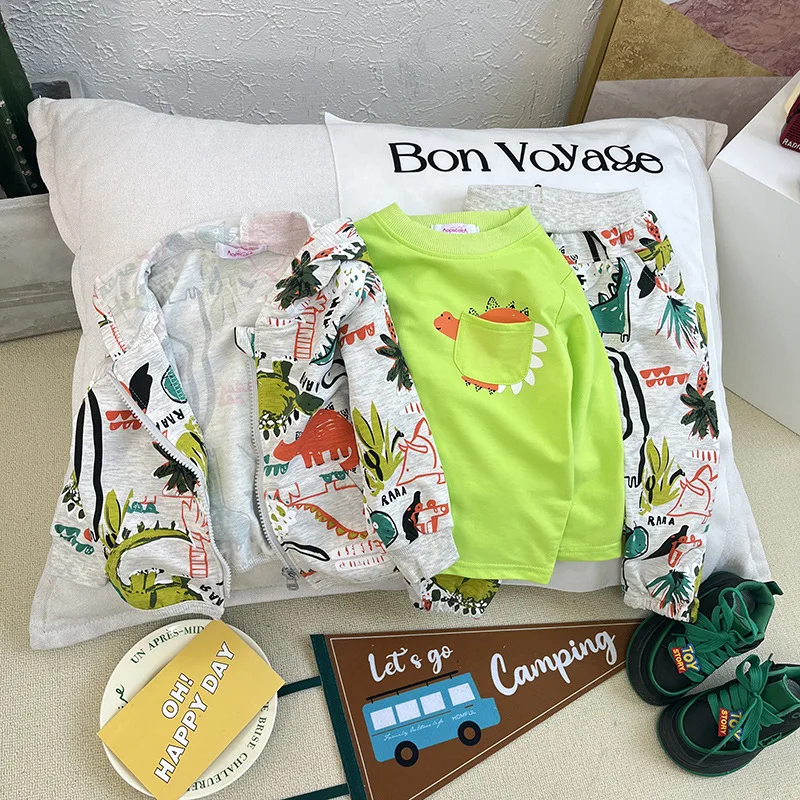 Ropa de otoño para niña, traje para niños, chaqueta con capucha de dibujos animados, camiseta, pantalones, 3 unids/set, disfraz informal para niños pequeños, chándales para niños de 0 a 4 años
