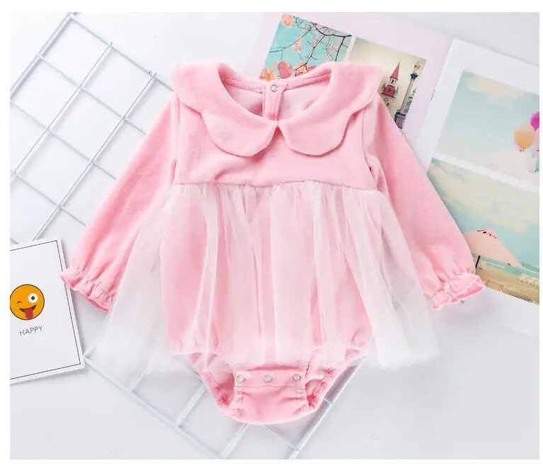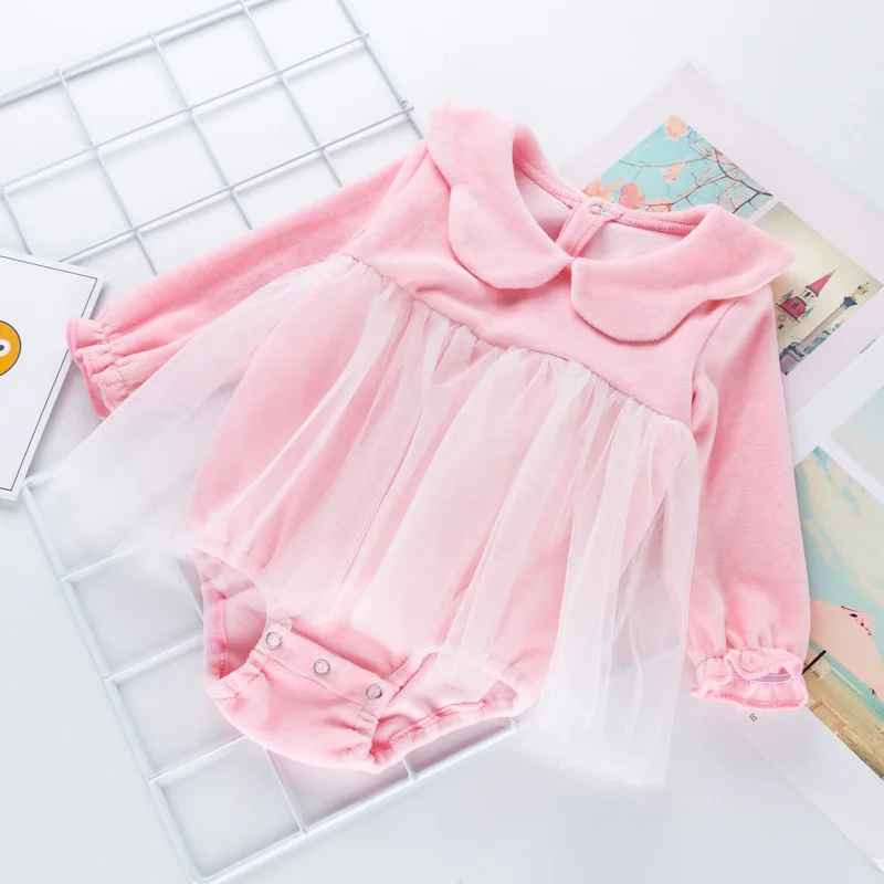 Comprar Ropa de otoño para niñas recién nacidas de 0 a 3 meses, mono de manga larga con cuello de muñeca lindo de lana de encaje coreano, ropa de bebé BC810