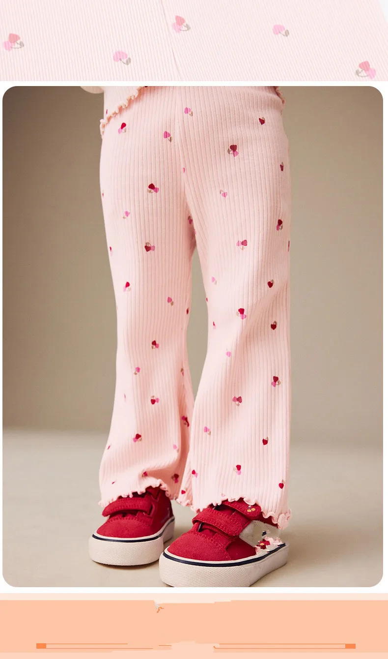 Comprar Ropa de otoño para niños, mallas de pierna ancha con estampado de corazón para niñas, pantalones, ropa para niños