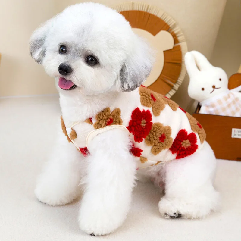 Ropa para perros, abrigo sin mangas con flores rojas y azules para invierno, chaqueta para perros pequeños, disfraz de Chihuahua Dachshund para niño y niña, chaleco para cachorros, chaqueta