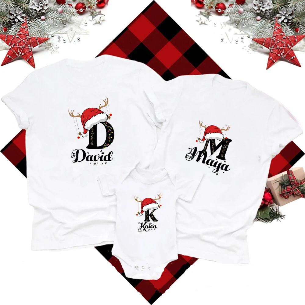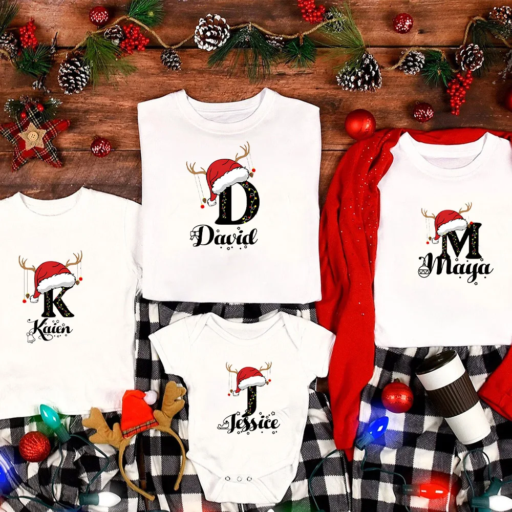 Ropa personalizada de Navidad para la familia, ropa a juego con inicial con nombre, camiseta para mamá, papá, hija, hijo, atuendos, camisa, Body para bebé