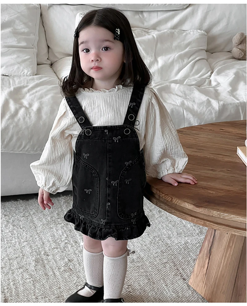 Comprar Ropa de primavera de estilo coreano para bebé de 0 a 3 años, vestido vaquero con tirantes y lazo, blusa infantil, 2 uds., falda bonita para niña, traje para niño pequeño