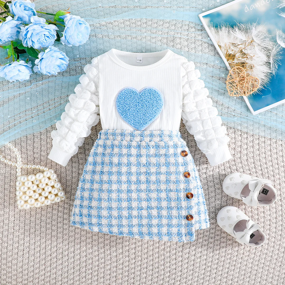 Ropa de primavera para niña pequeña, Tops de algodón de manga larga y falda a cuadros, conjuntos coreanos, ropa de Boutique para bebé, BC662
