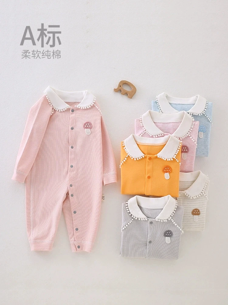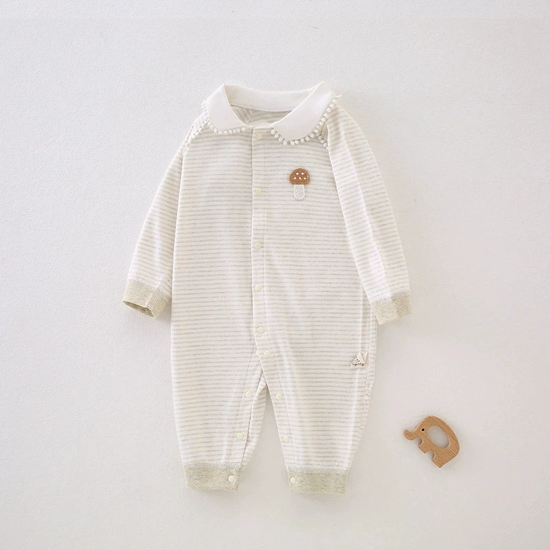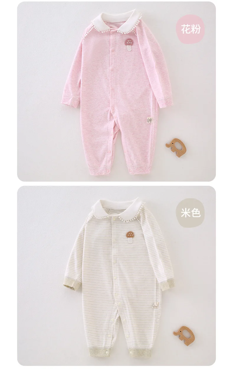 Comprar Ropa de primavera para niñas, peleles de manga larga de algodón a rayas con cuello de muñeca de dibujos animados coreanos, ropa de Boutique para bebés, artículos para recién nacidos BC267