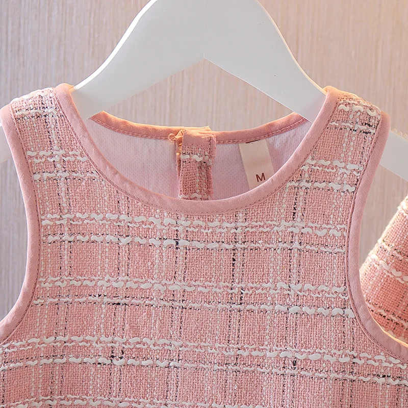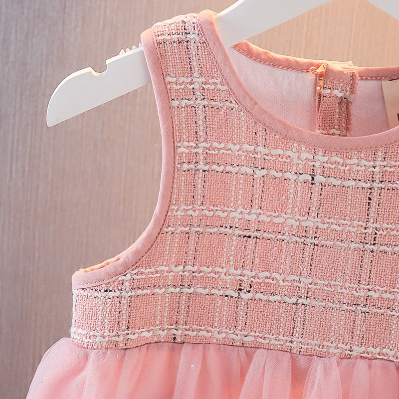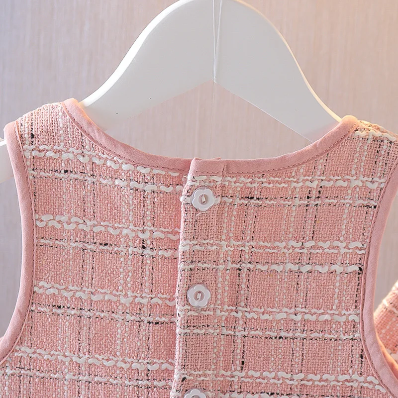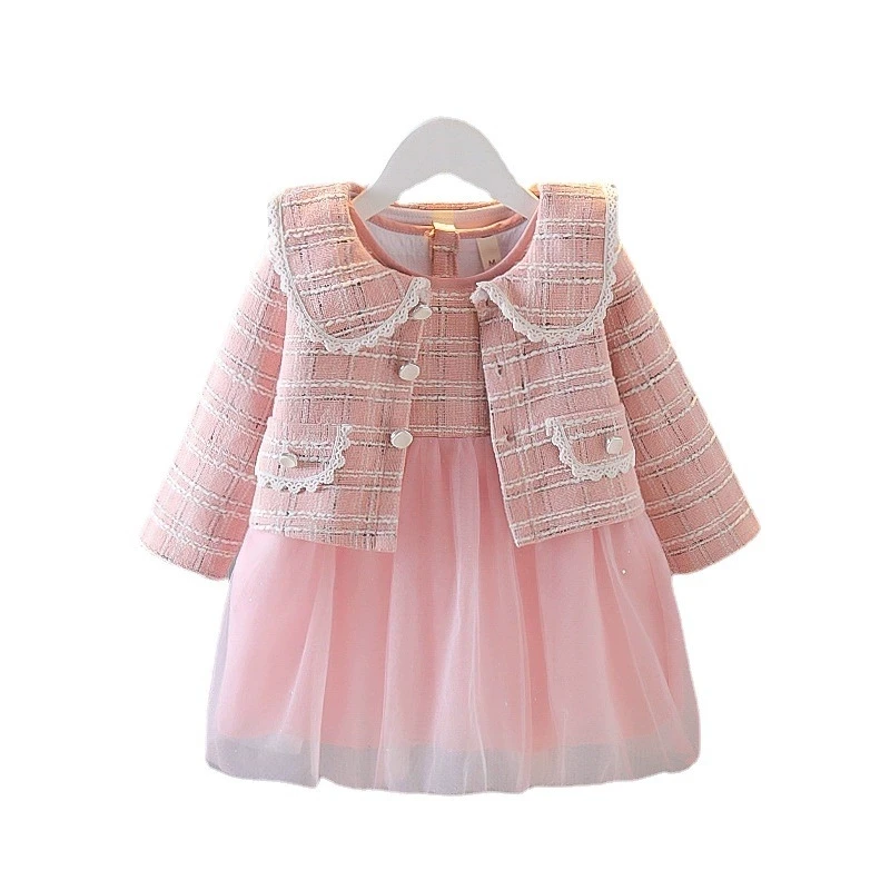 Ropa de primavera y otoño para niña, abrigo con cuello de muñeca a cuadros a la moda coreana + vestido de malla sin mangas, trajes de Boutique para bebé BC133, 2 piezas