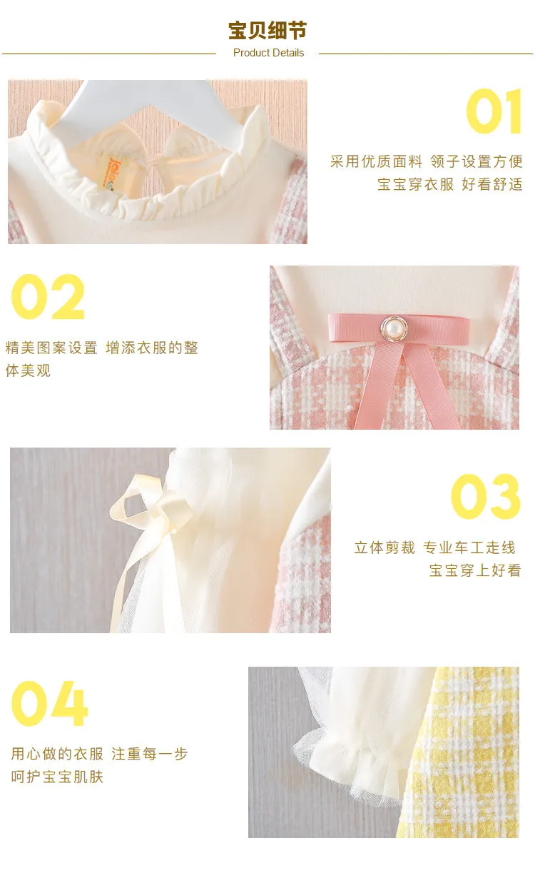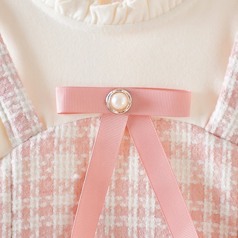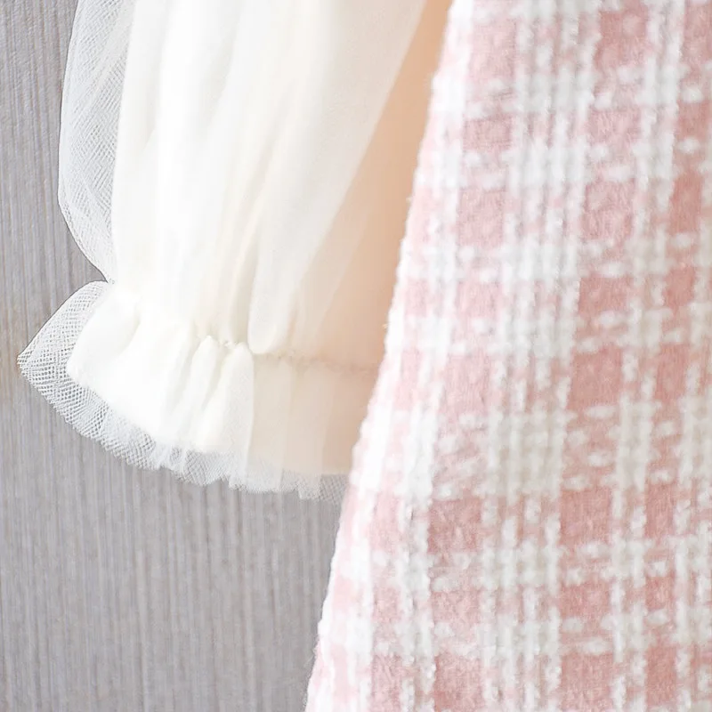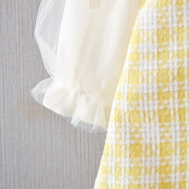 Ropa de primavera y otoño para niña pequeña, vestido de princesa a cuadros de encaje de manga larga con lazo lindo coreano, vestidos de cumpleaños, ropa de bebé BC623