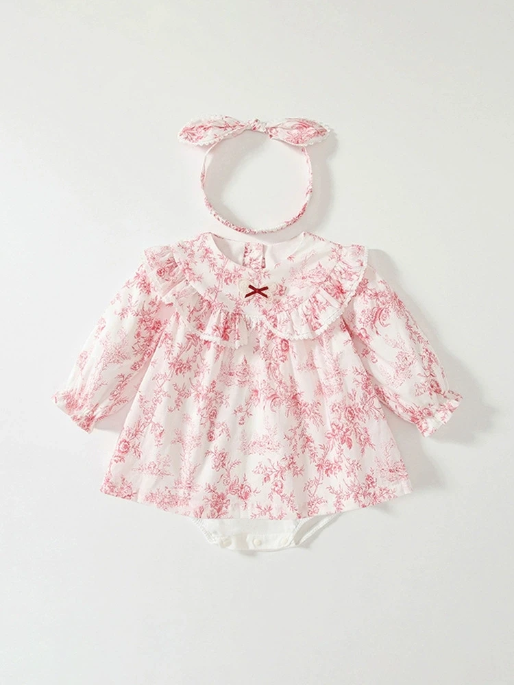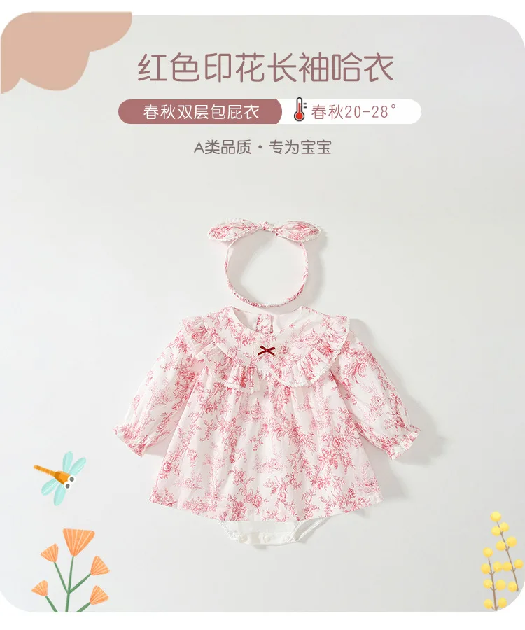 Ropa de primavera y otoño para niñas recién nacidas, monos de manga larga de algodón con cuello de muñeca de flores bonitas de estilo chino, ropa de Boutique para bebés BC508
