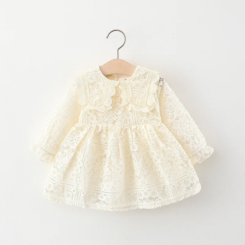 Ropa de primavera y otoño para niño niña, moda coreana, cuello de muñeca, manga larga, encaje, vestidos de 1er cumpleaños para bebé, vestido de princesa BC050