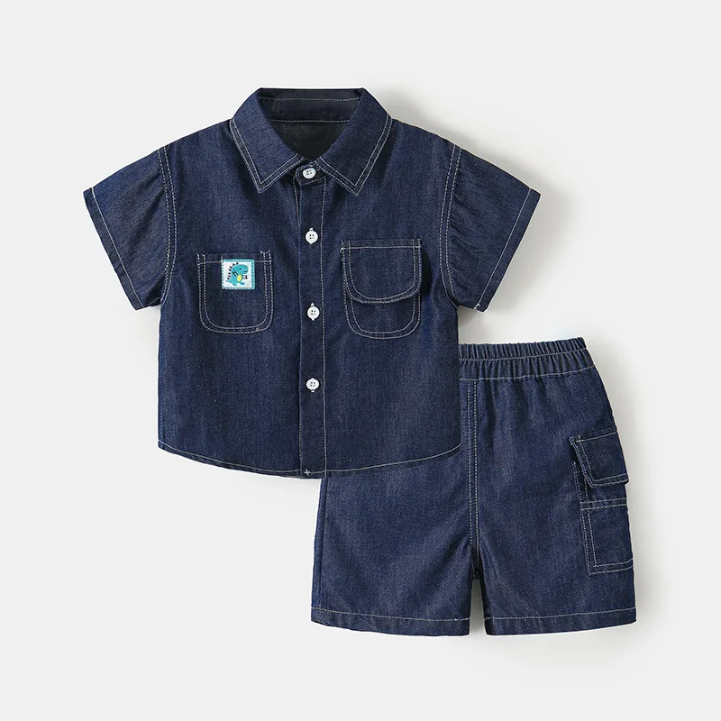 Comprar Ropa de verano de 2 piezas para niños pequeños, ropa coreana para niños, moda informal vaquera, camisetas de manga corta para bebés + Pantalones cortos, conjuntos para niños B059
