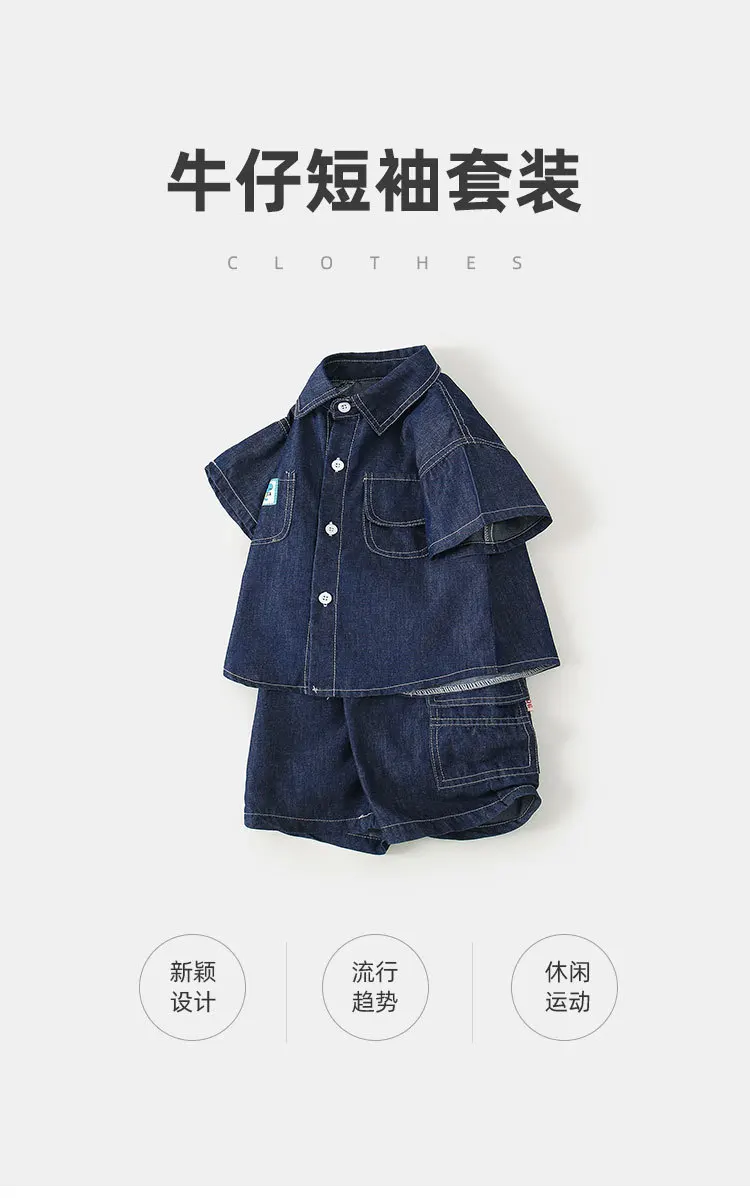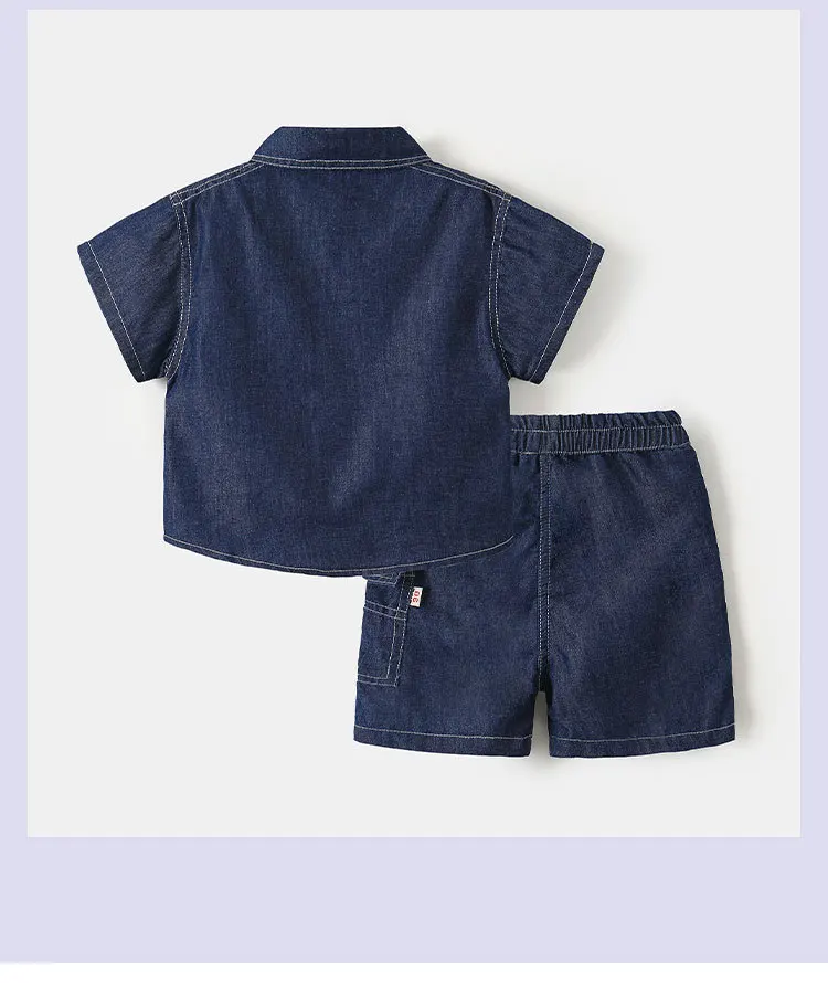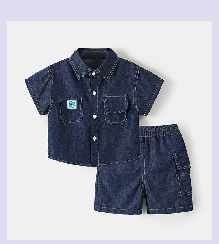 Ropa de verano de 2 piezas para niños pequeños, ropa coreana para niños, moda informal vaquera, camisetas de manga corta para bebés + Pantalones cortos, conjuntos para niños B059
