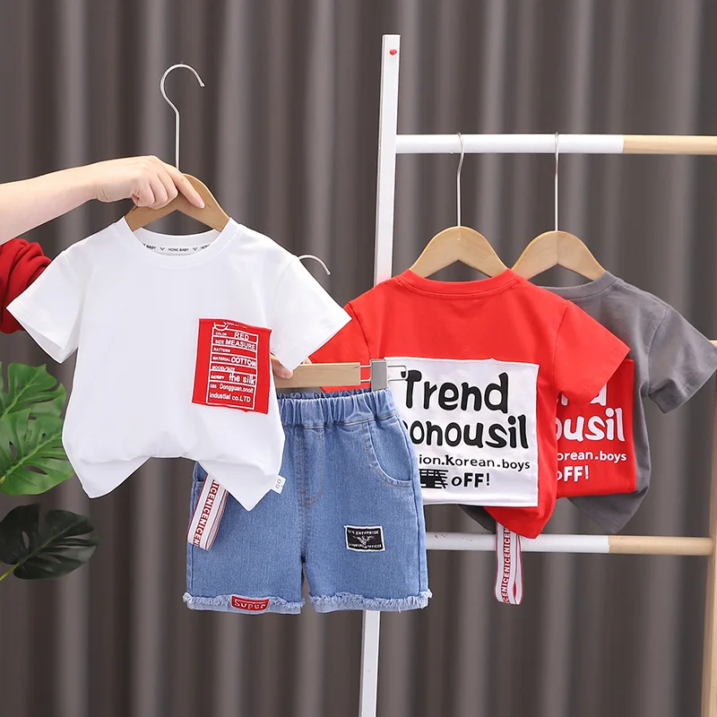 Nueva ropa de verano para niña, camiseta con letras para niños, pantalones cortos, 2 unids/set, trajes para niños, disfraz informal para niños pequeños, chándales infantiles para 0-5 años