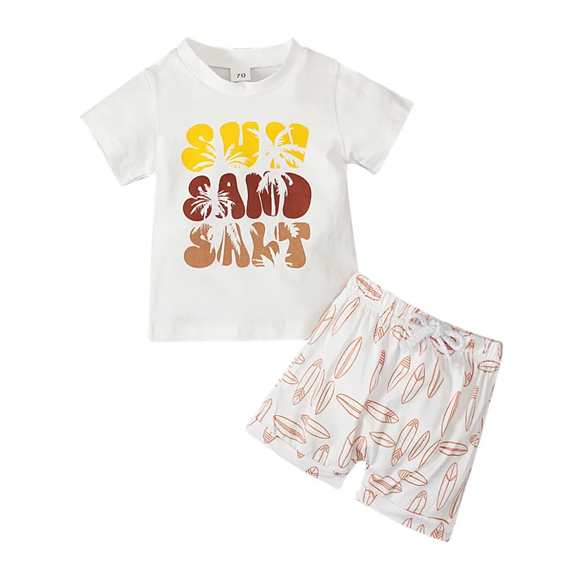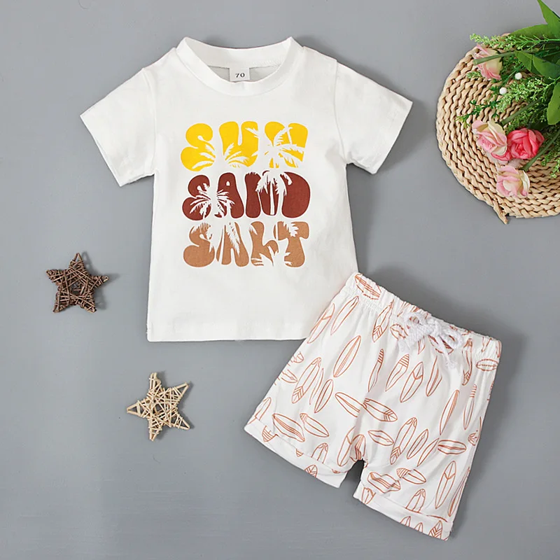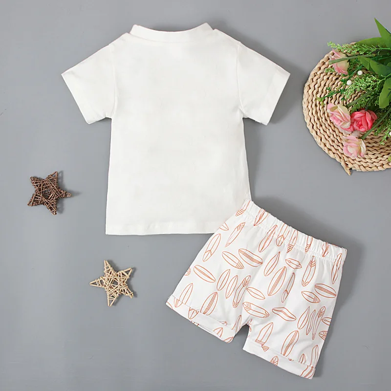 Comprar Ropa de verano para bebé, traje coreano informal con estampado de letras, Tops de manga corta y pantalones cortos de algodón, conjunto de ropa para recién nacido, BC829, 2 piezas
