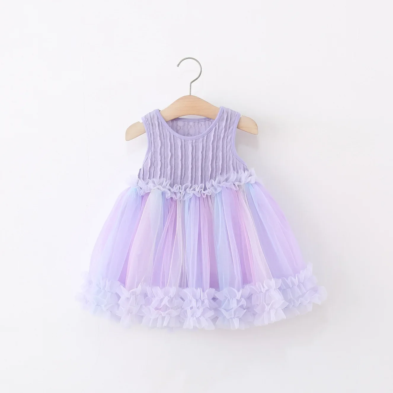 Ropa de verano para bebé, vestidos para niña, moda coreana, vestido de princesa sin mangas de malla para cumpleaños, artículos para recién nacidos de 3, 6, 9 meses B027