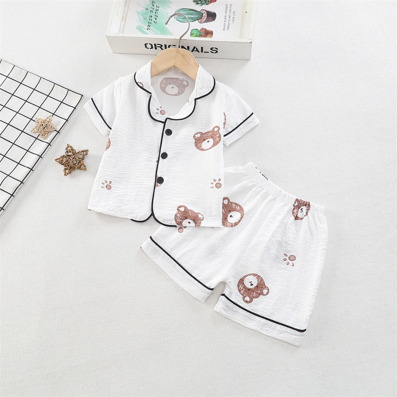 Nueva ropa de verano para niñas, traje para niños, ropa de dormir, camisa, pantalones cortos, 2 unids/set, pijamas para niños, ropa para niños pequeños, disfraz para niños de 0 a 4 años