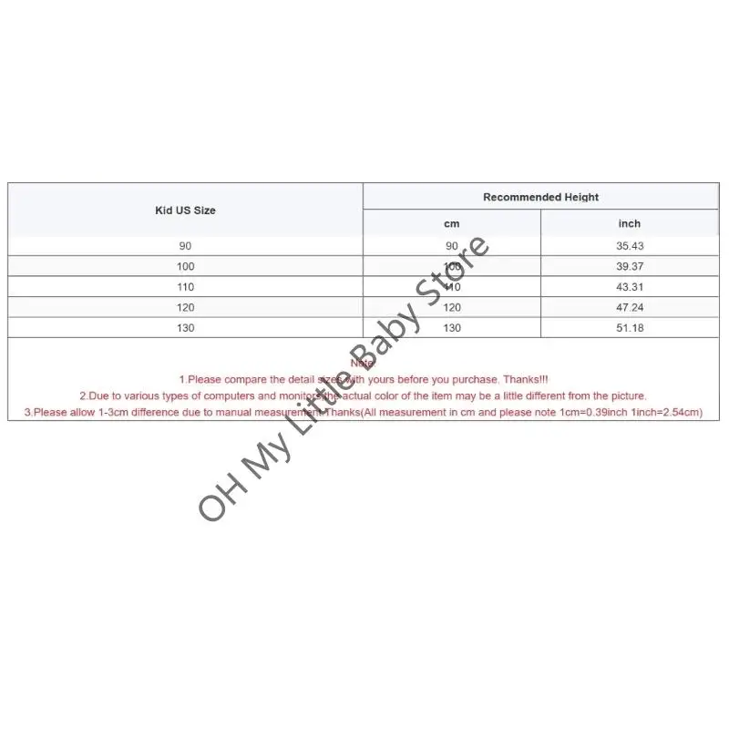 Tamaño infantil de EE. UU.: 130 Altura recomendada: 130 cm (51,18 pulgadas)
