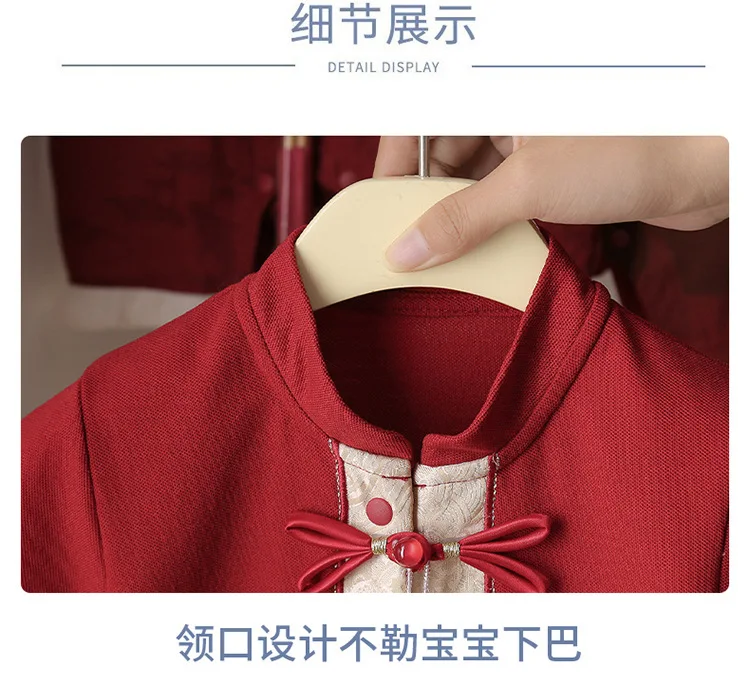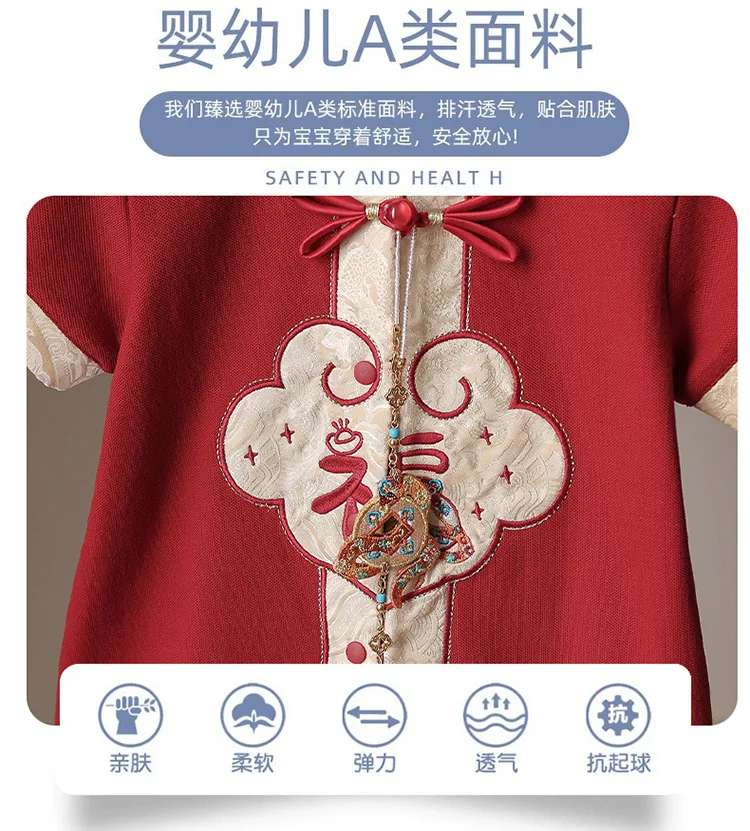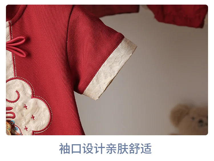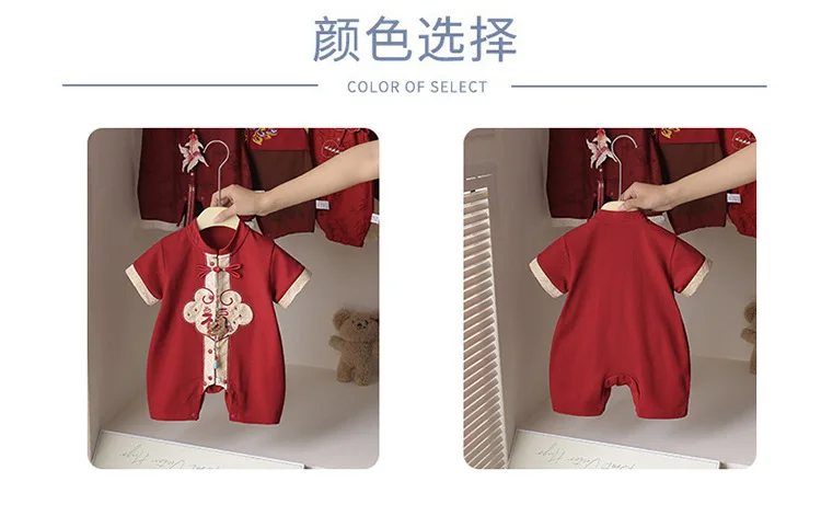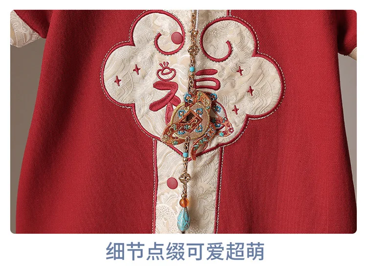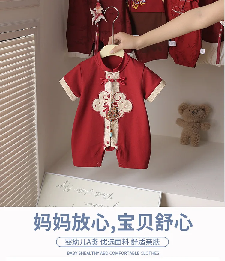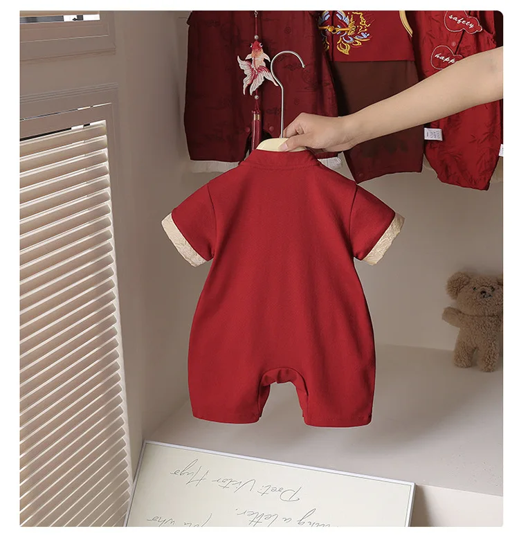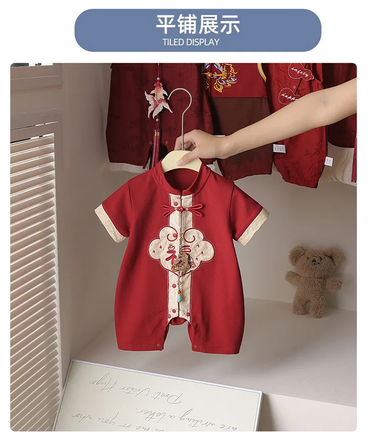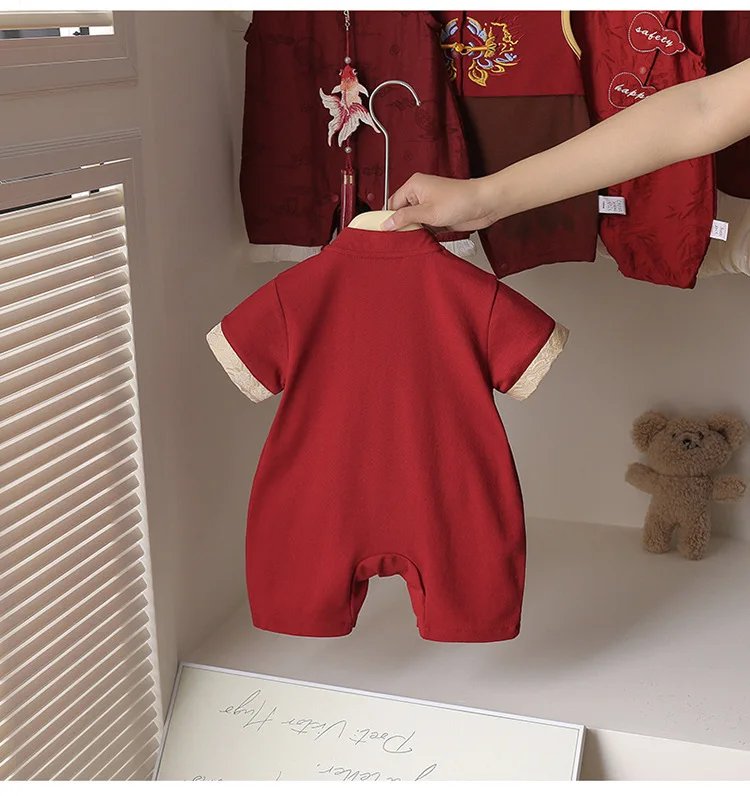Ropa de verano para niña de 0 a 6 meses, monos bordados de manga corta rojos de estilo chino, trajes para niño pequeño B286