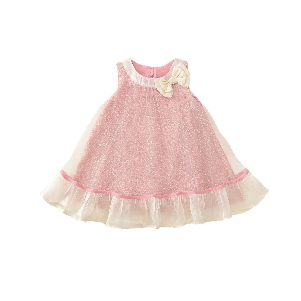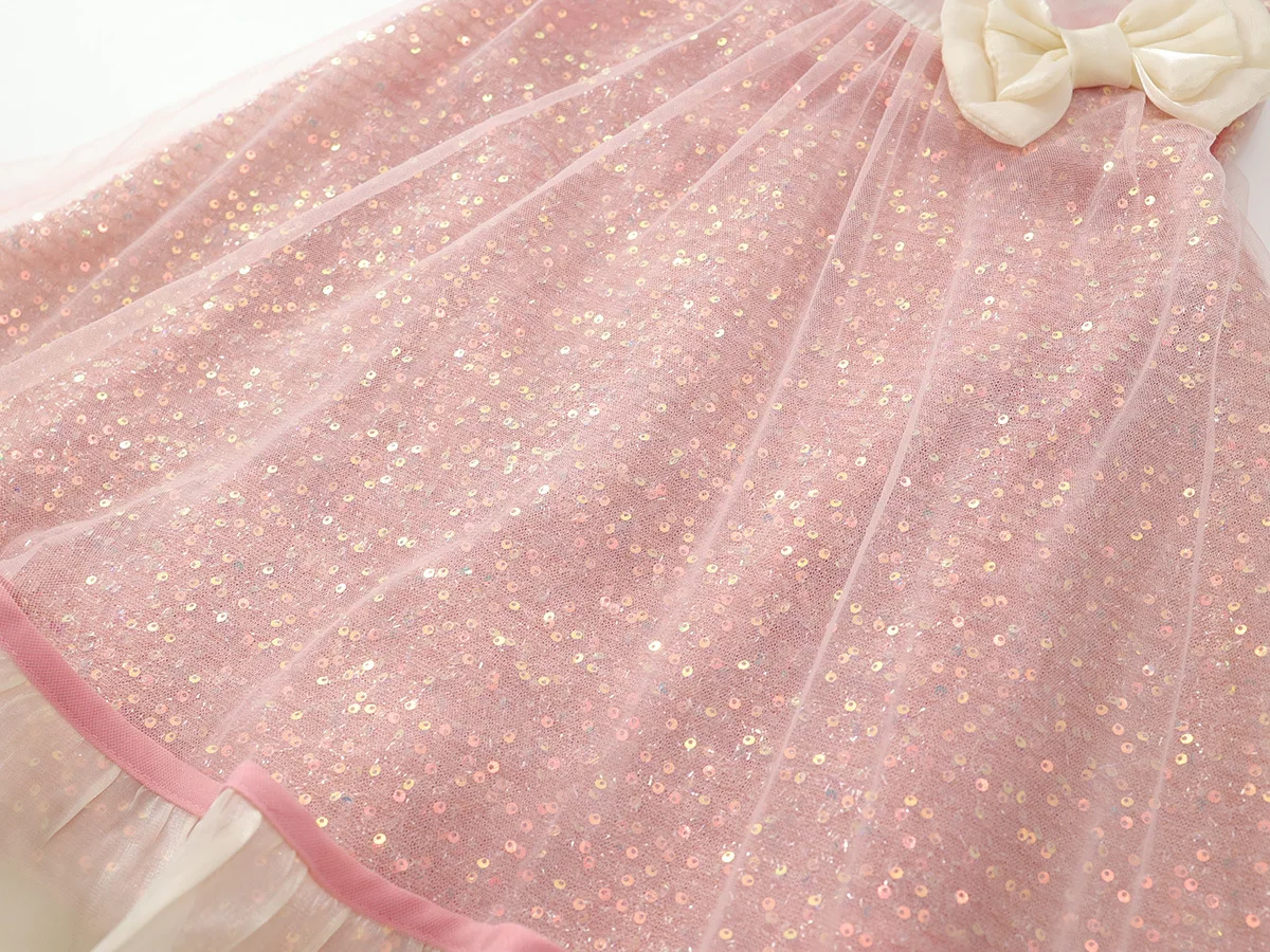 Ropa de verano para niña pequeña, moda coreana, bonito lazo de malla, vestido de princesa rosa para niño pequeño, vestidos de bebé, ropa de Boutique para niño B100