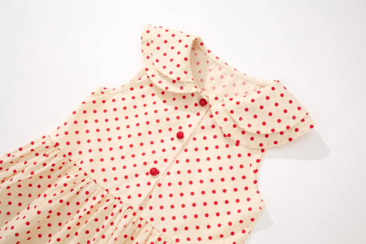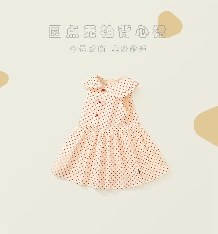 Ropa de verano para niña pequeña, vestido coreano de princesa de algodón sin mangas con cuello de muñeca de lunares, vestidos de bebé, ropa de Boutique para niños B058