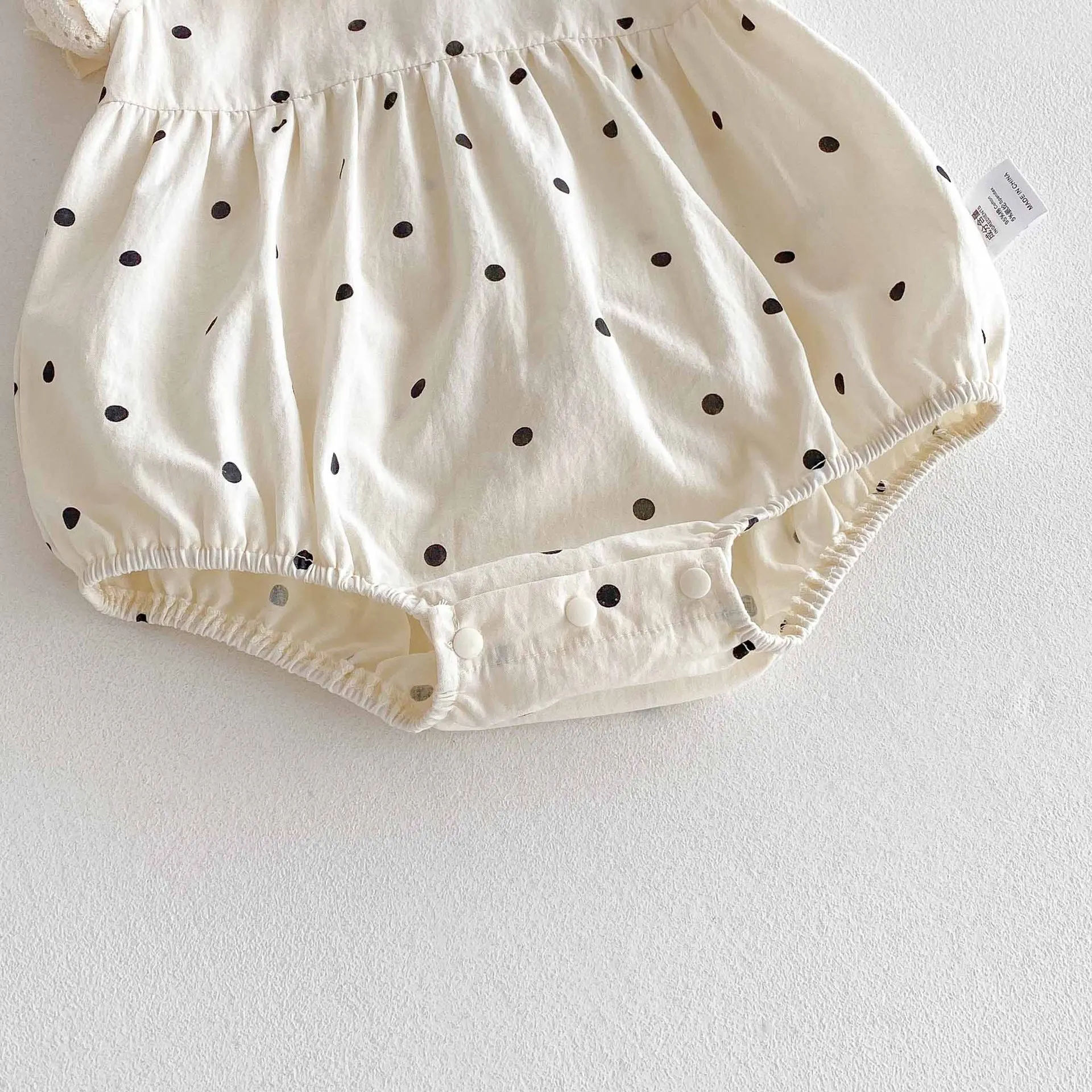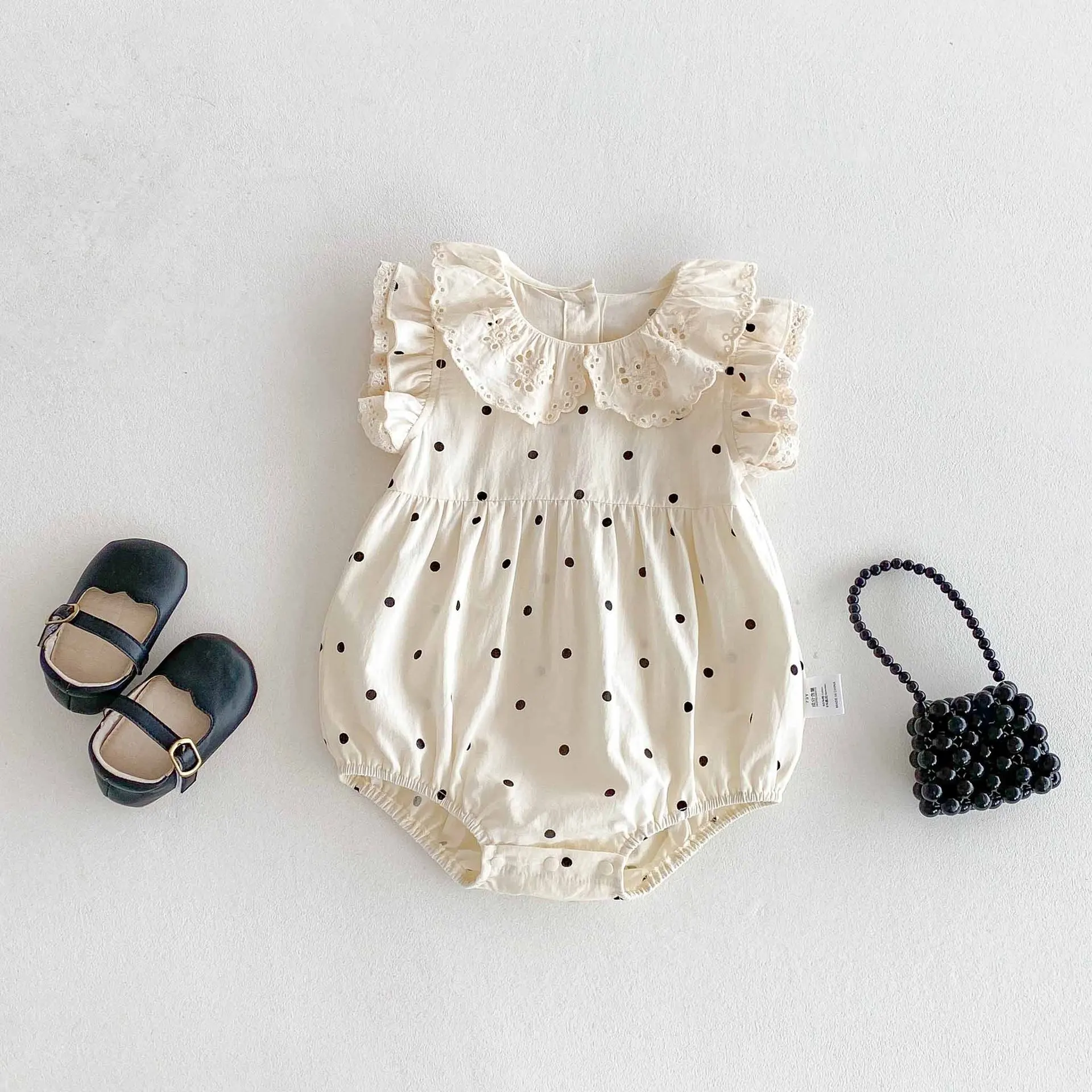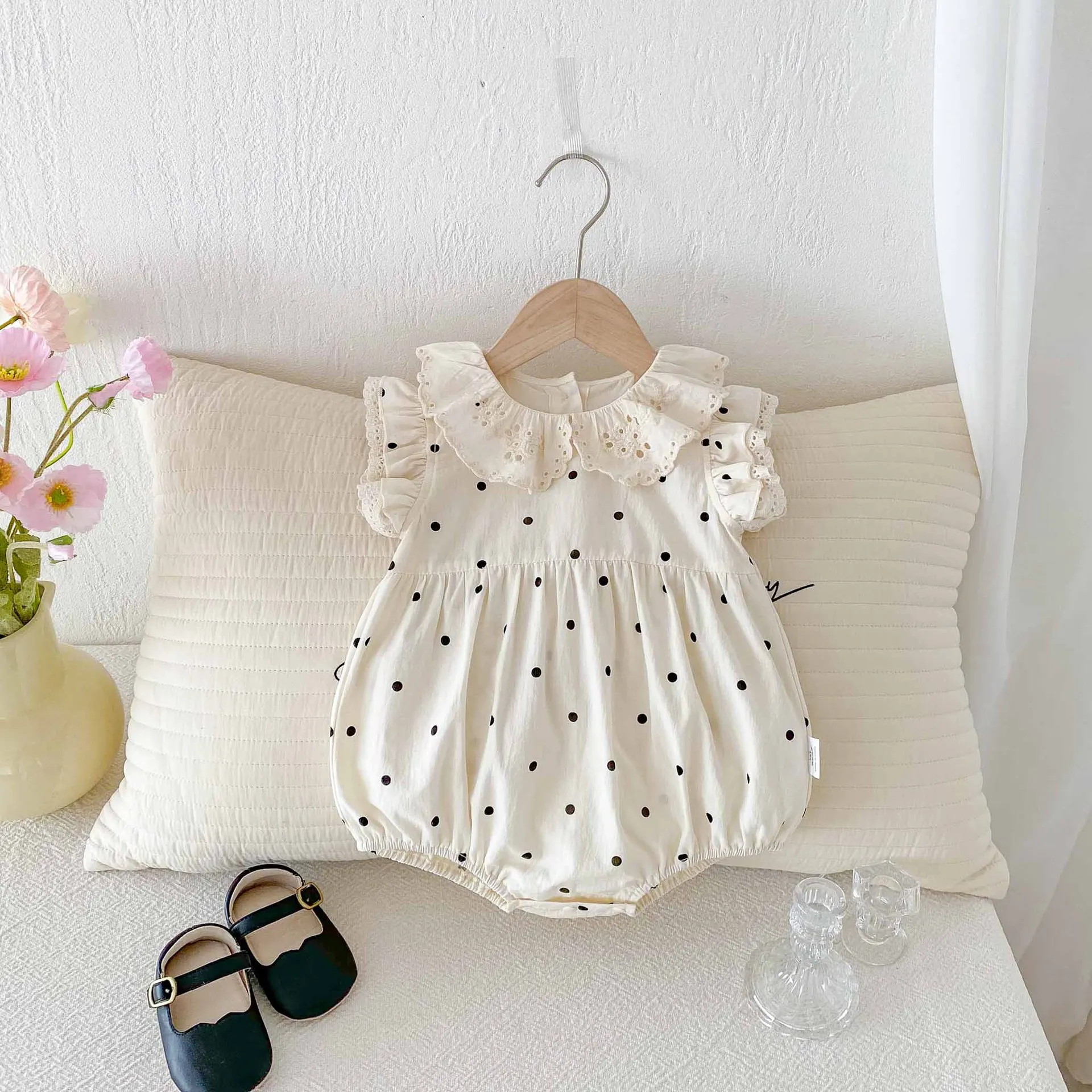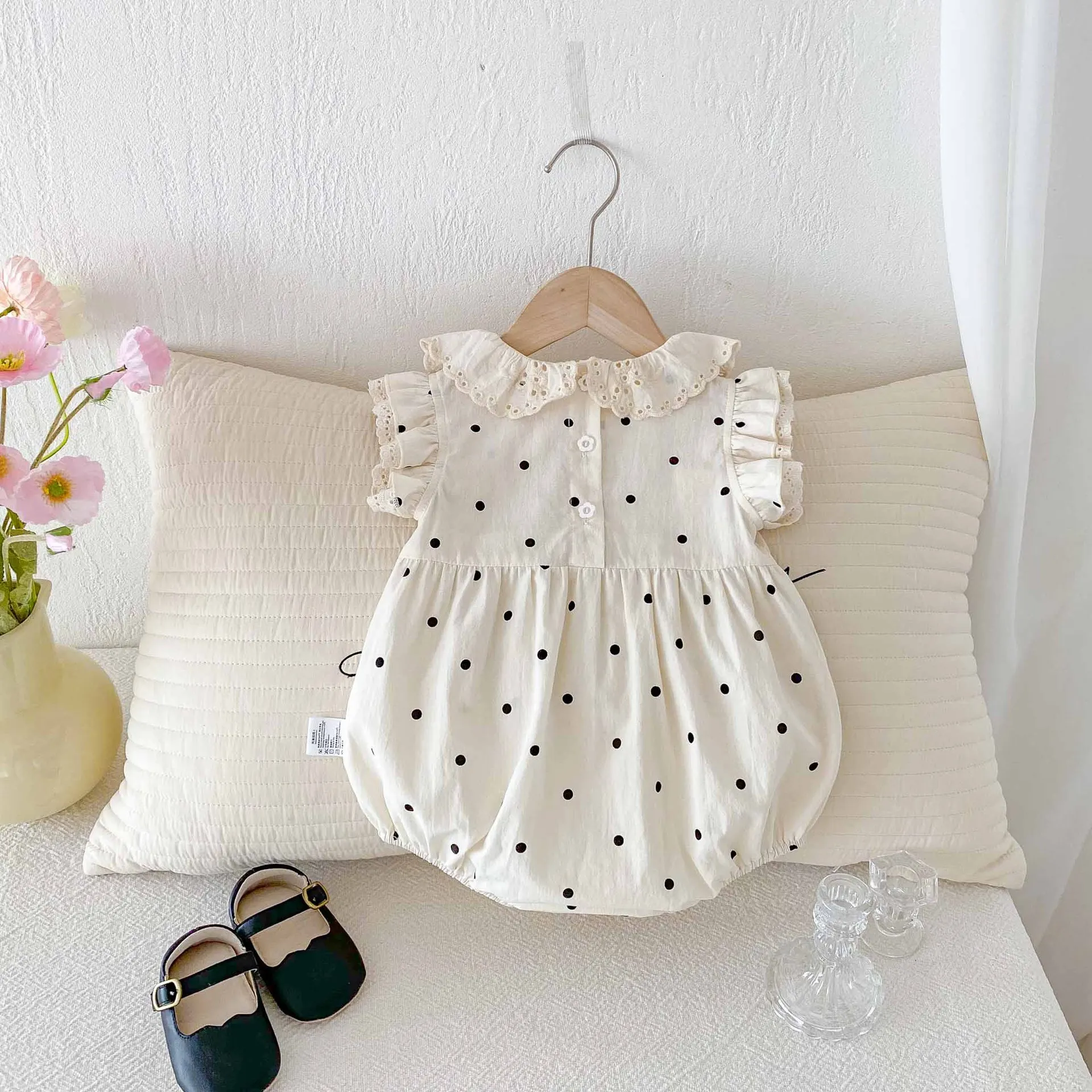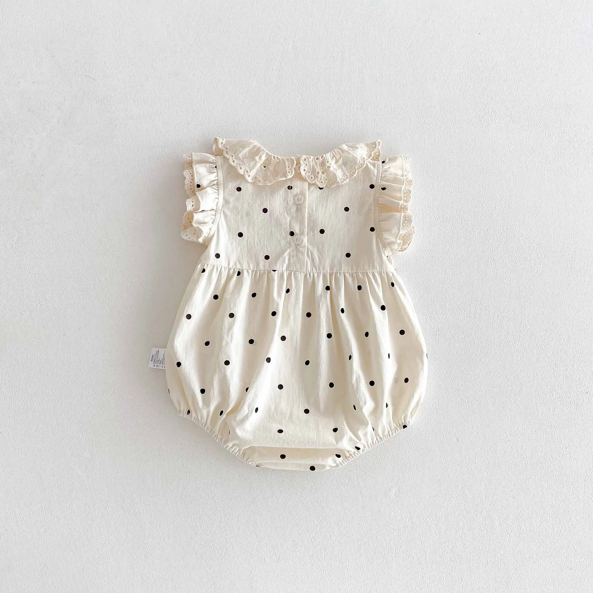 Ropa de verano para niñas de 0 a 2 años, monos de lunares con cuello de encaje, traje de una pieza con manga acampanada