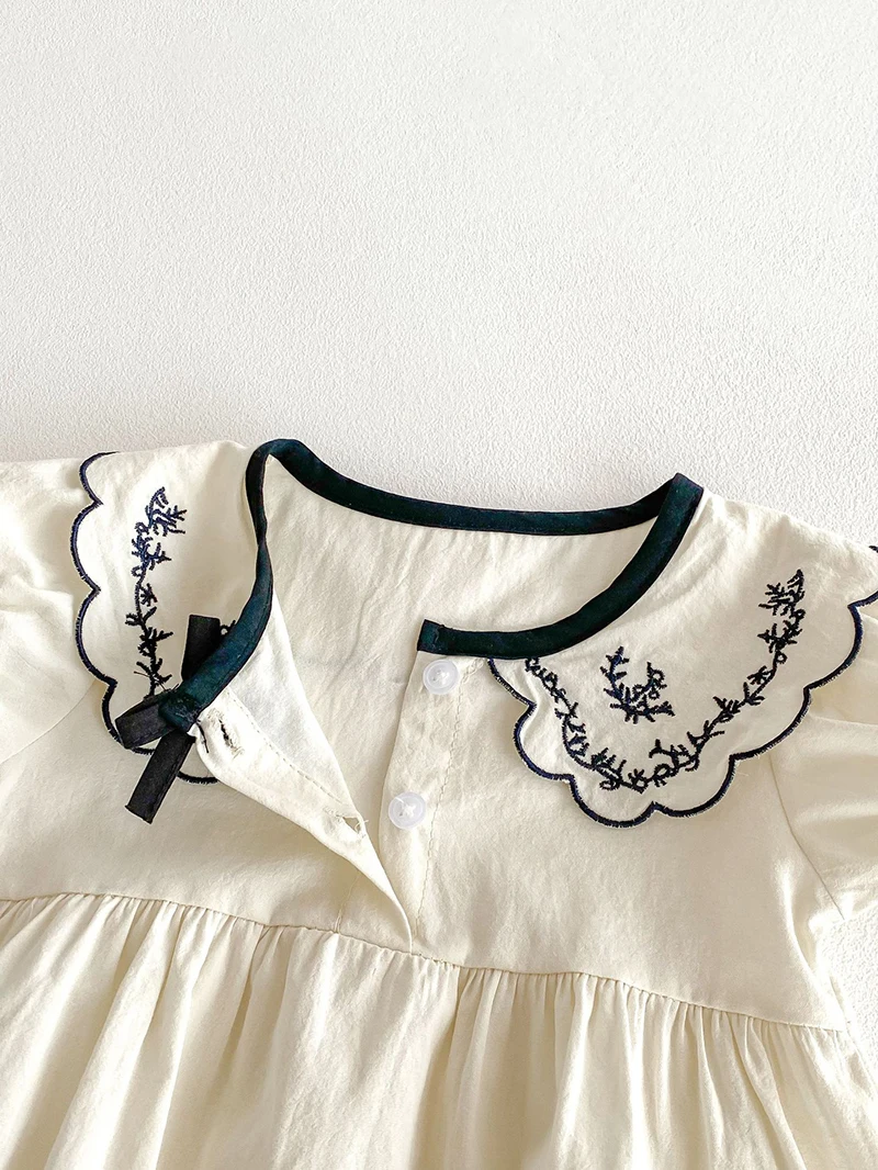Comprar Ropa de verano para niñas de 0 a 2 años, Body infantil de manga corta con cuello vuelto bordado y ropa de cumpleaños para niños pequeños de una pieza